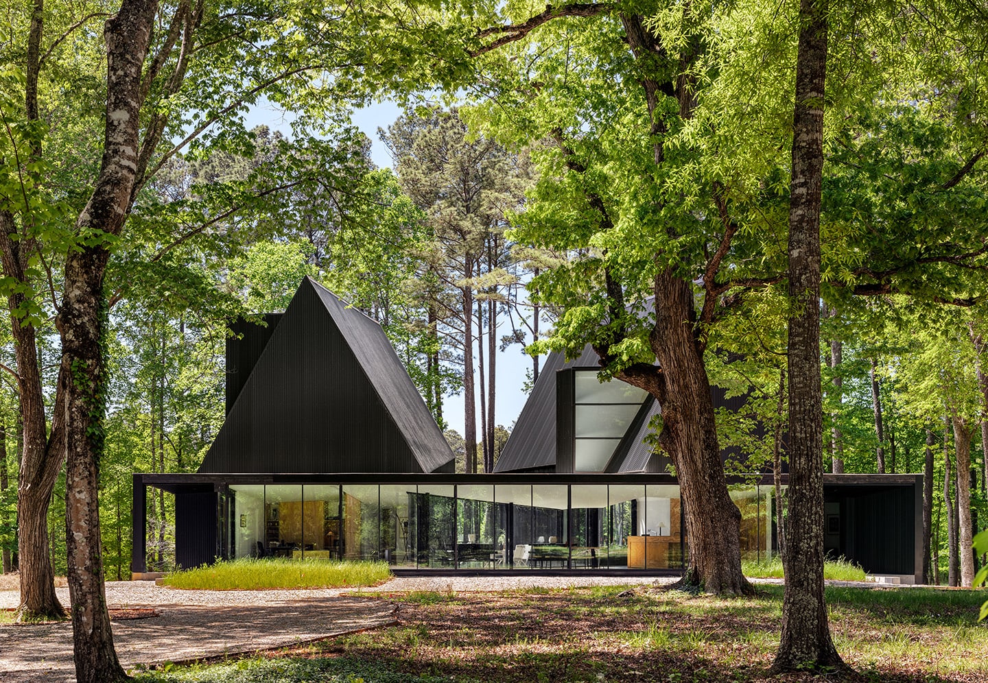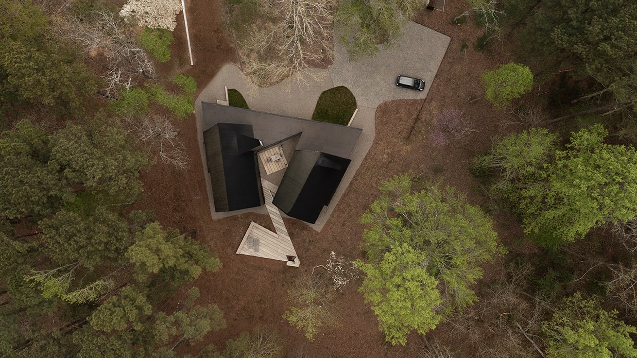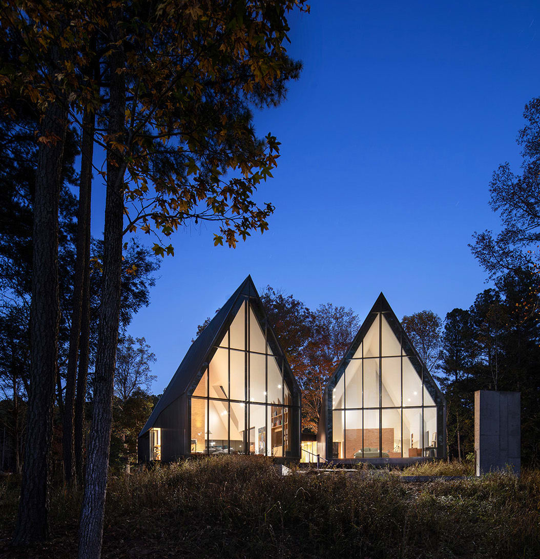 Located on a wooded 26ha site in the Appalachian foothills near the Eno river around Raleigh Durham, NC, the house is designed as a place of reflection and repose – a pavilion-like structure amongst the trees that connects to the expansive natural setting.