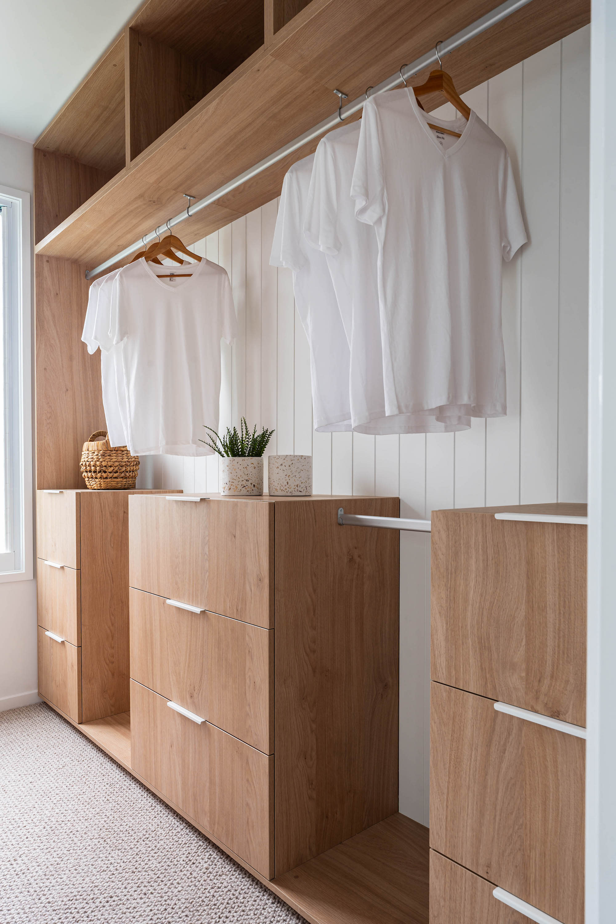 We chose VJ panelling and a coastal-inspired colour palette to create a serene and inviting atmosphere – capturing the essence of a beachside retreat.