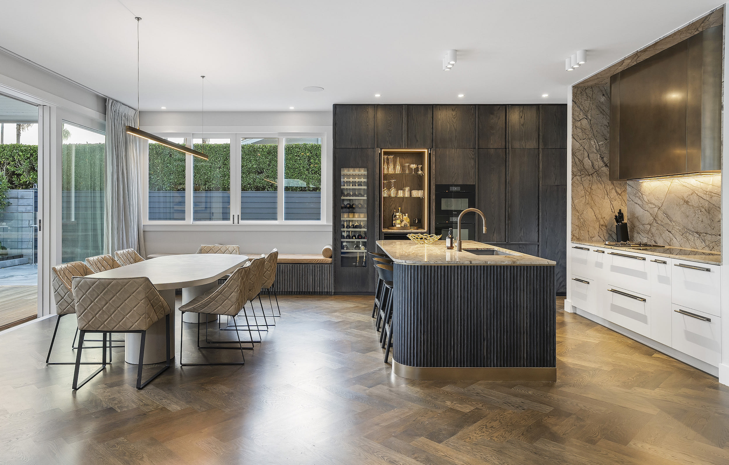 Back-to-back living spaces – one for the children, the other for the adults – were created, while the dining space was pushed closer to the kitchen and the outdoor entertaining area, and the size of the scullery was increased to include a dedicated coffee/drinks station.