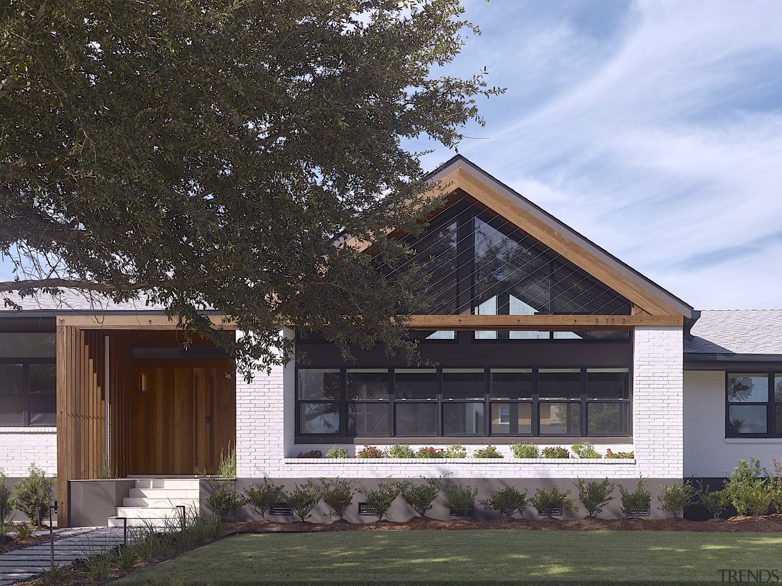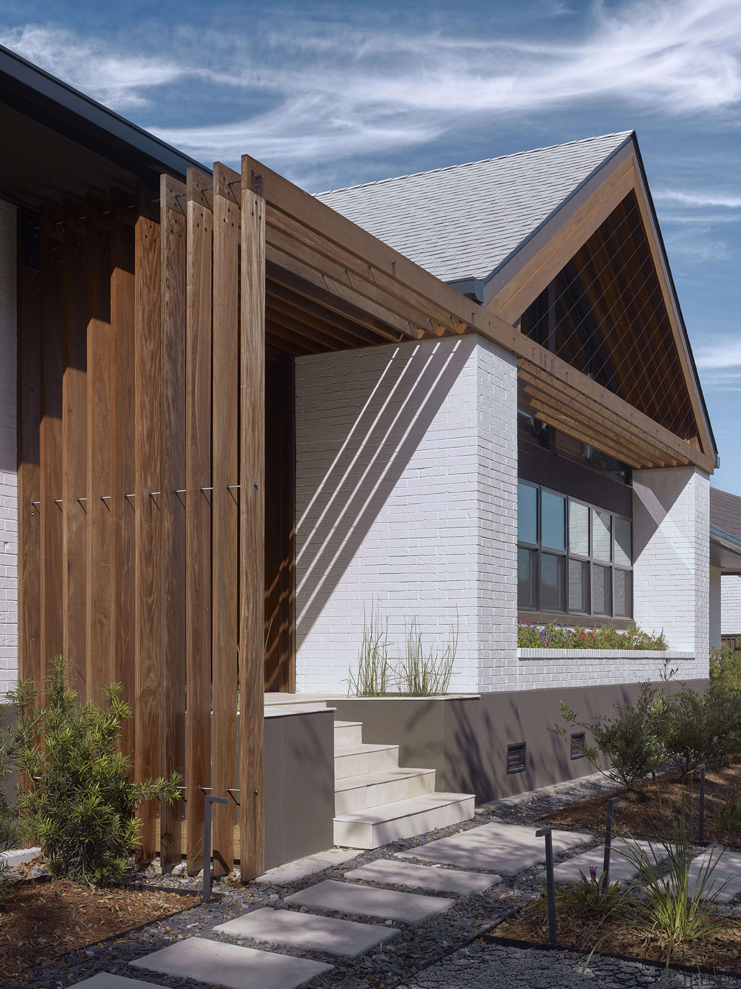 On the exterior, an ipe wood trellis structure was added to the front to accentuate the front gable and entry.