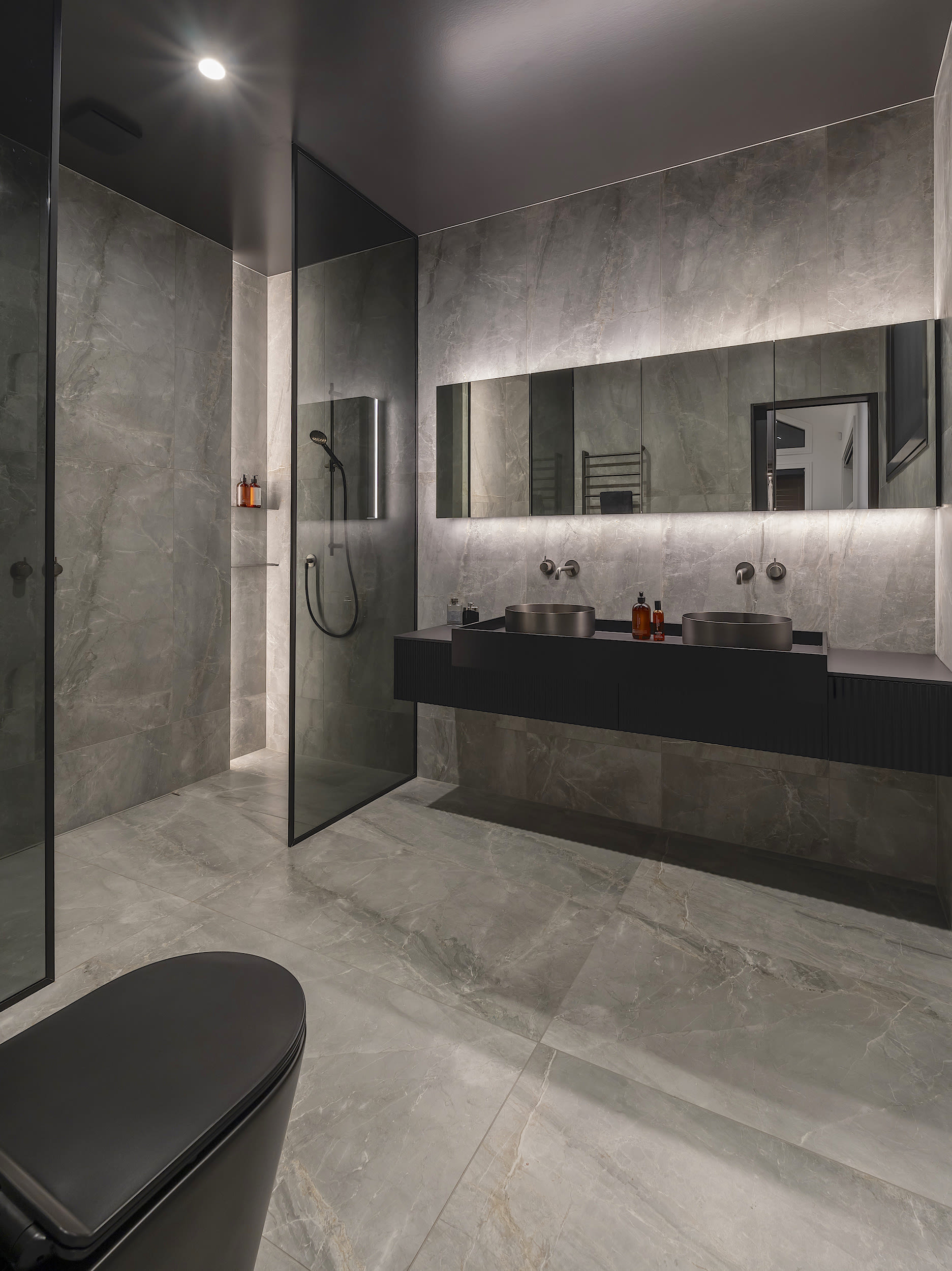 The modern, moody aesthetic was achieved using dark tones, matte finishes, and clean lines.