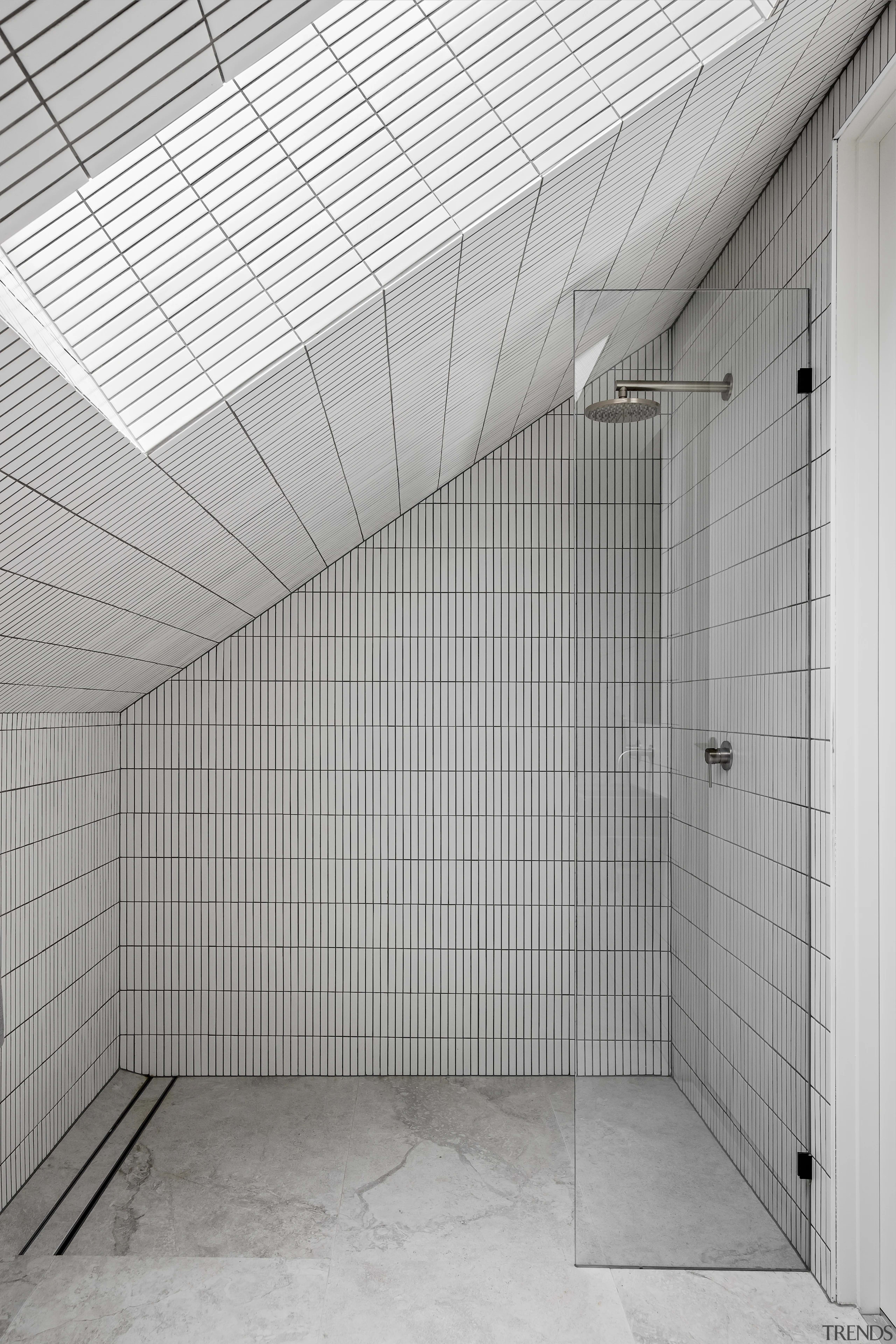 In tune with the calm, pared back feel of the wider home, this main bathroom delivers a relaxing 'bath house' vibe where the stonework and dramatic tub take centre stage and the shower is tucked away