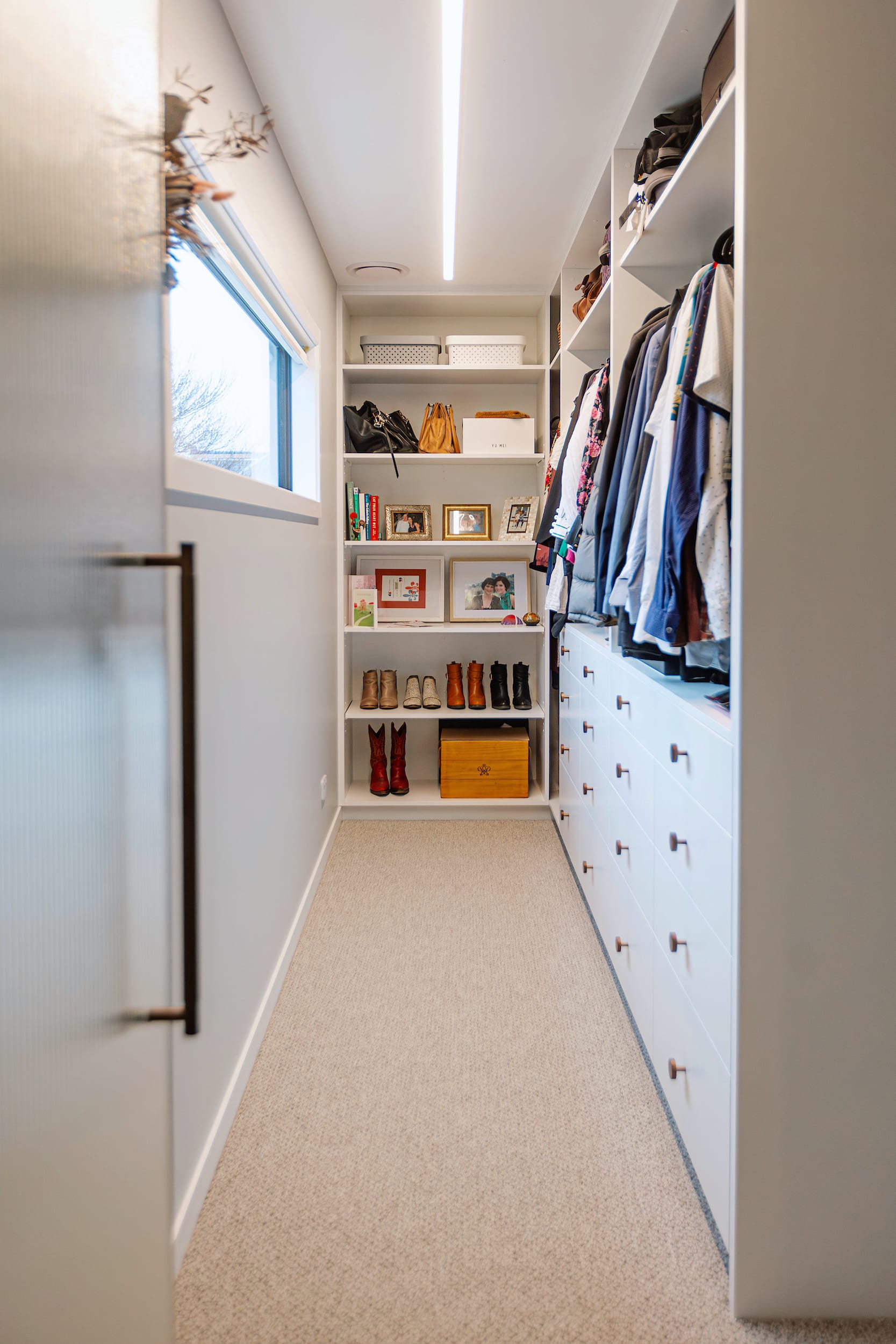 The design brief for the master suite of this large family home, situated on a constrained inner city plot, was to create a dark and moody oasis that offered a warm and welcoming embrace at the end of a busy day.