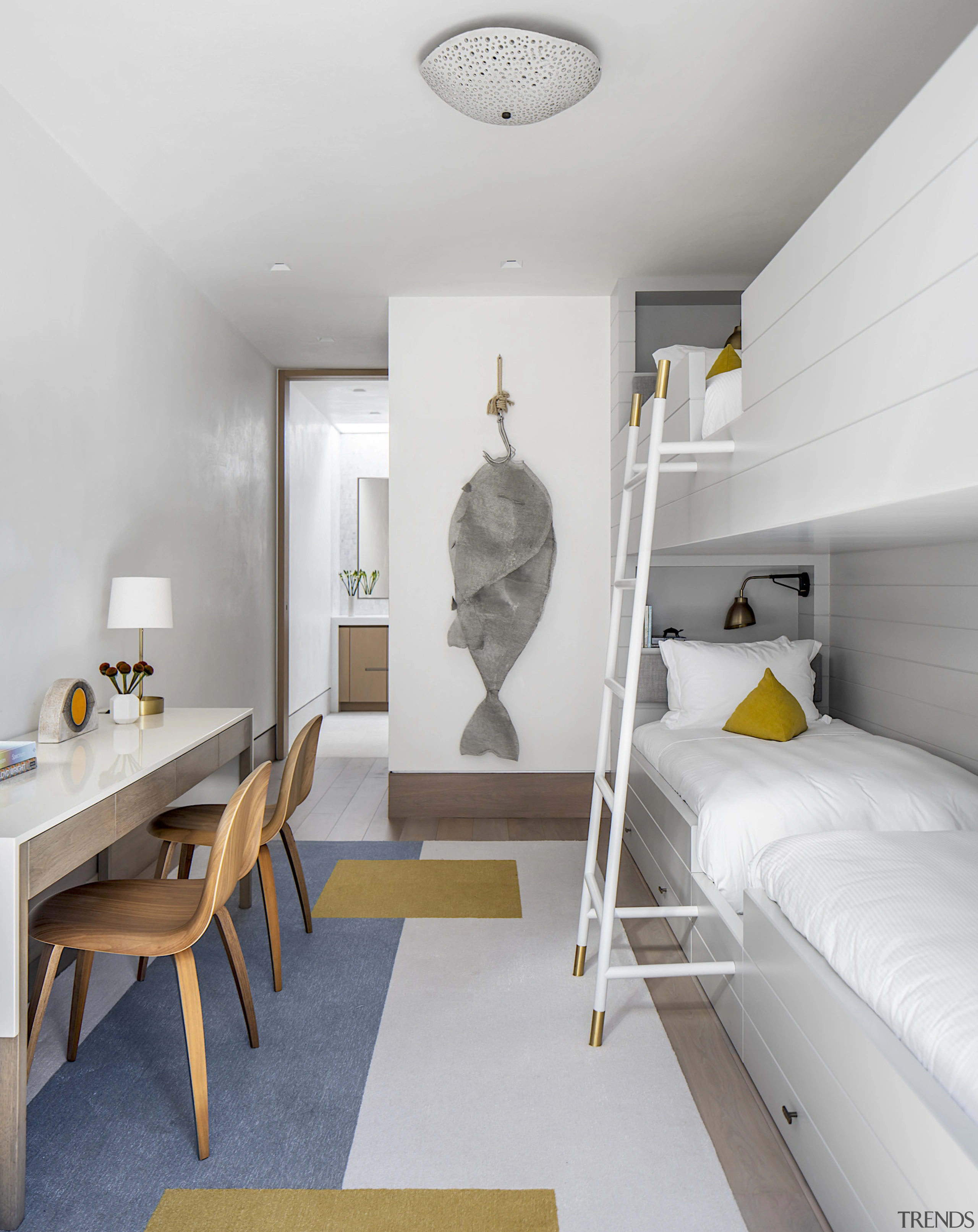 The bunks in this bedroom – complete with storage and ladder – aren’t just fun and cosy, they’re about space saving, too. As a result, a study desk fits, too, and if you ‘caught’ the nautical flavour, well this home is by the sea.