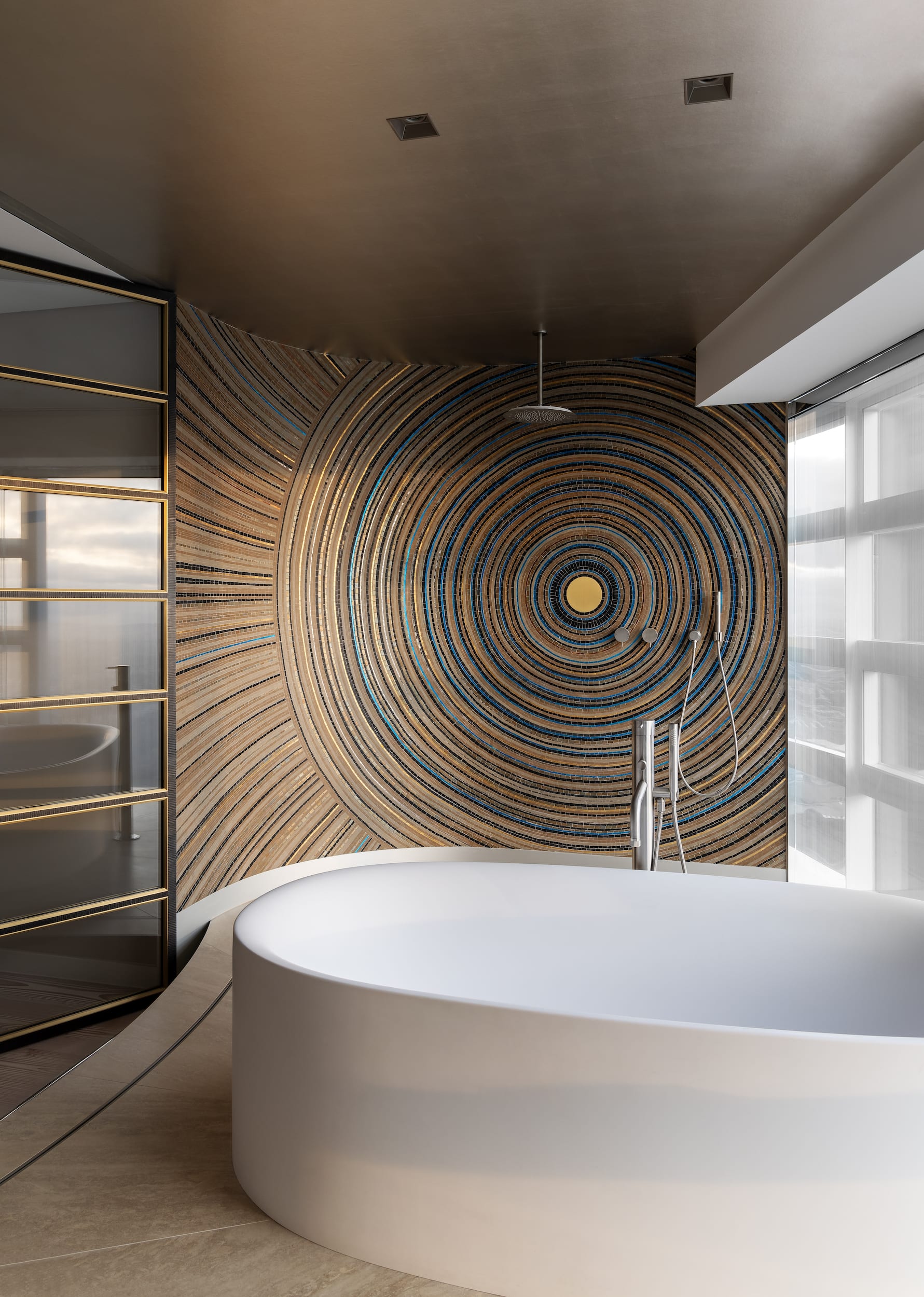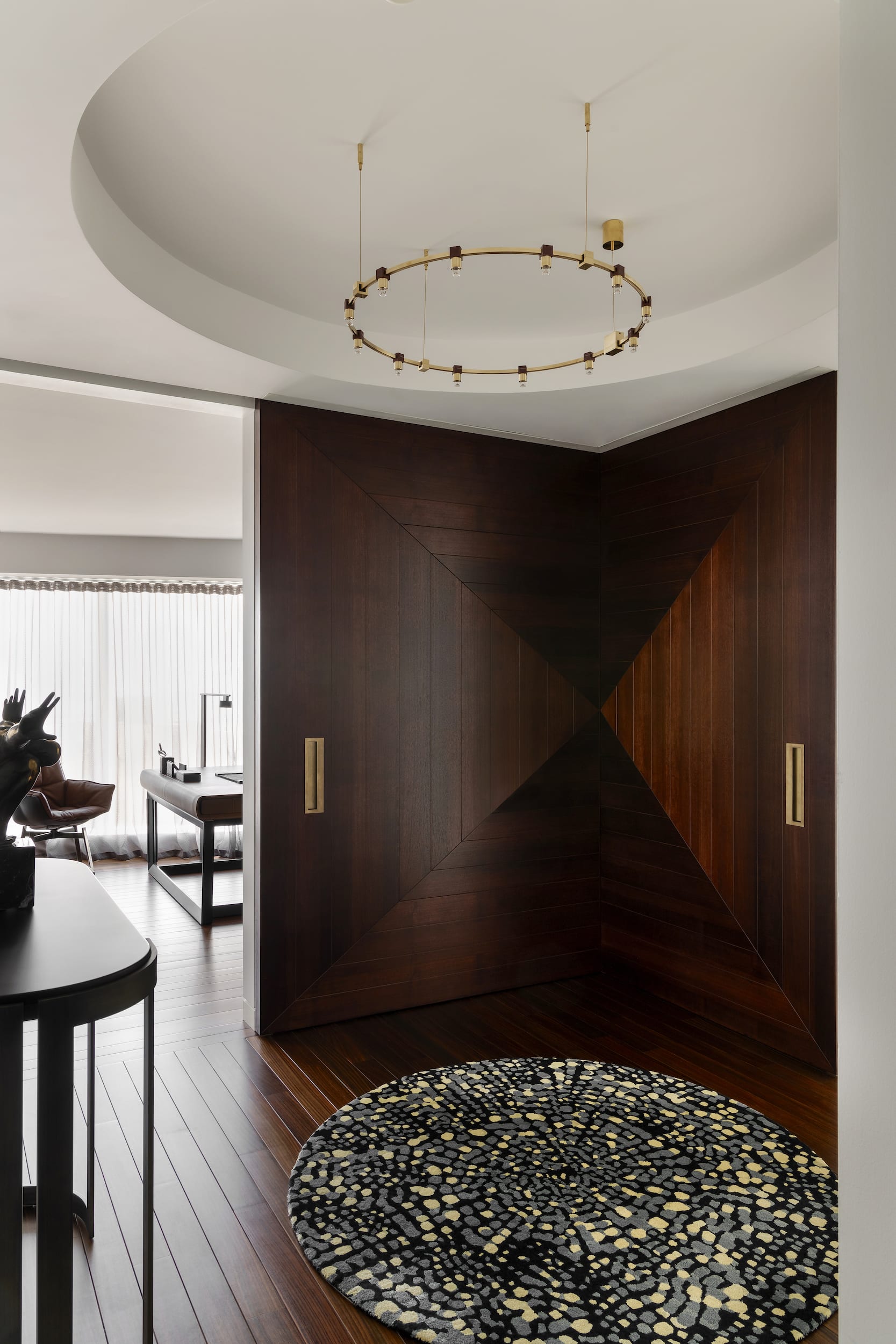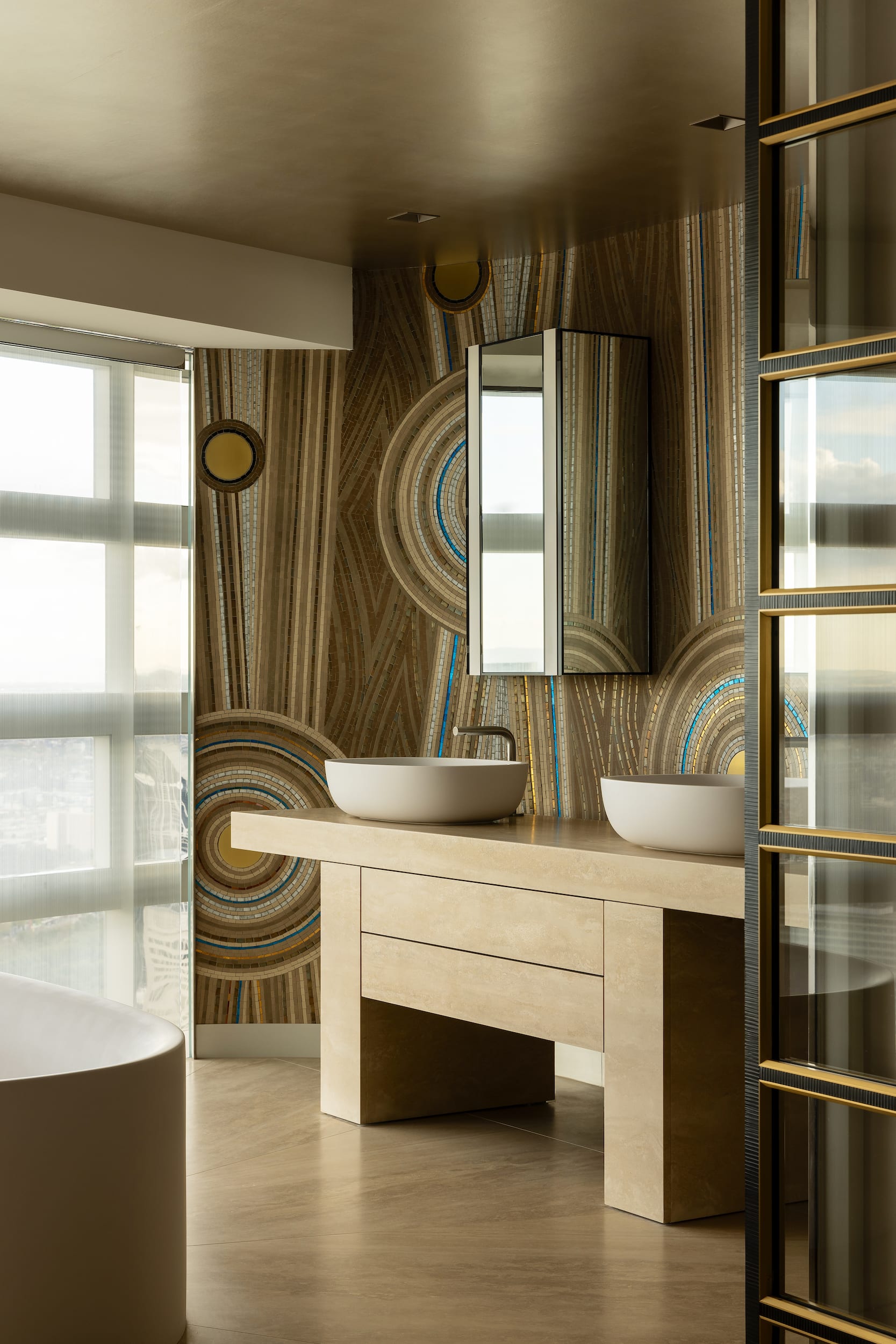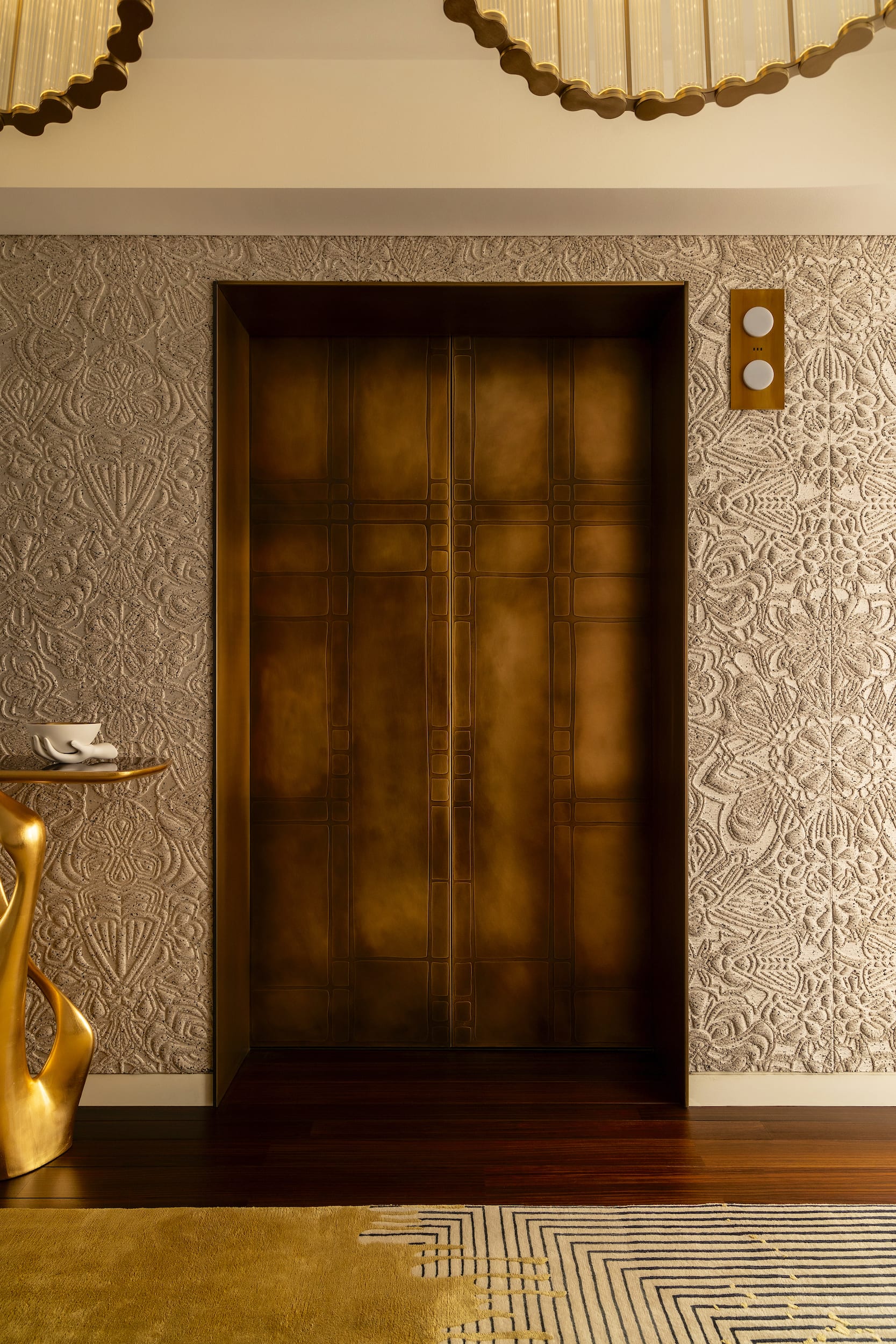 - Doors of distinction – four pairs of custom Italian solid brass doors, featuring an erosion pattern, serve as functional art pieces.