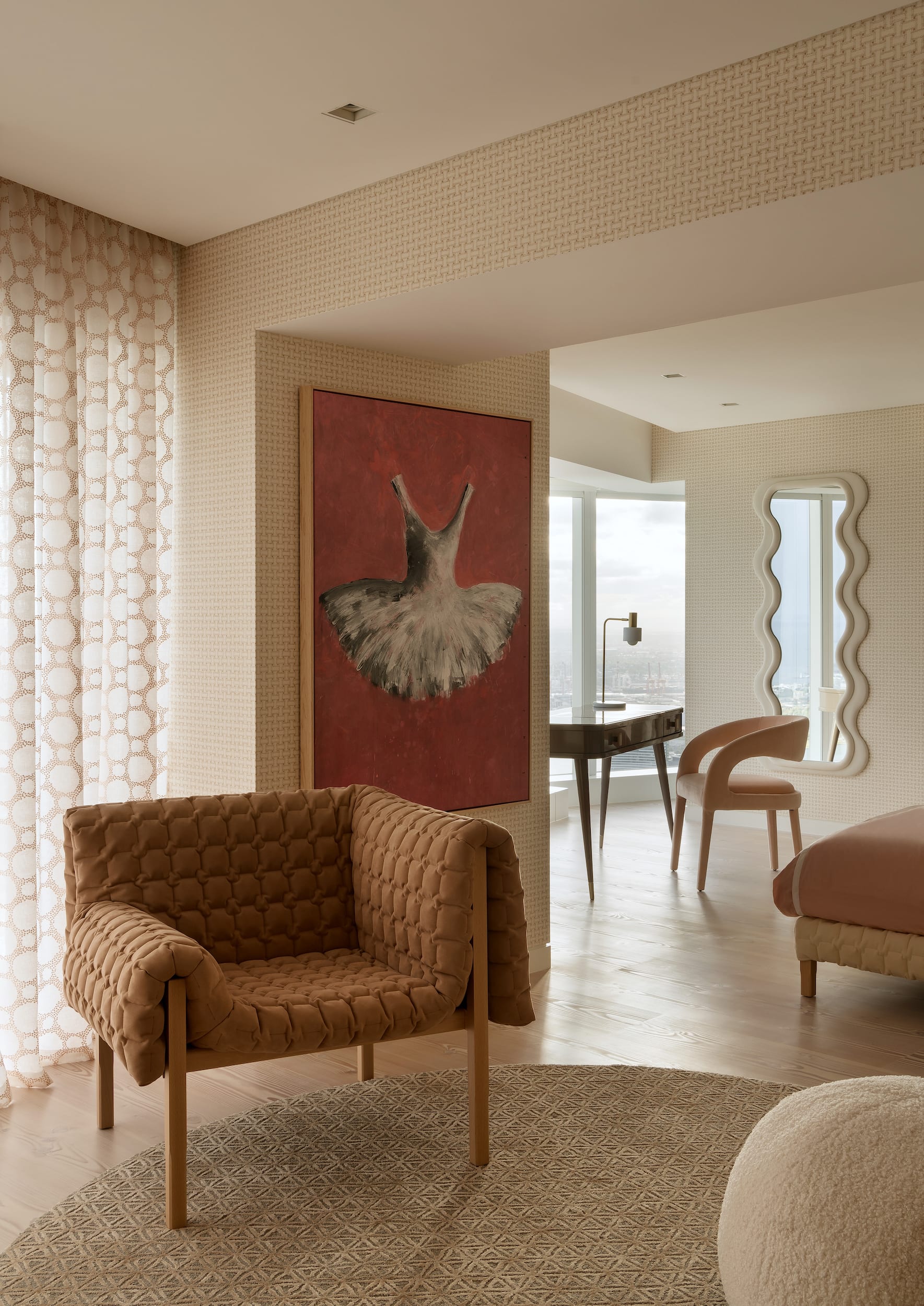Hermes wallpaper, Camengo Allos embroidered sheer curtains, a Ligne Roset armchair, Tapetti rug and an original Ewa Bathalia tutu all feature!