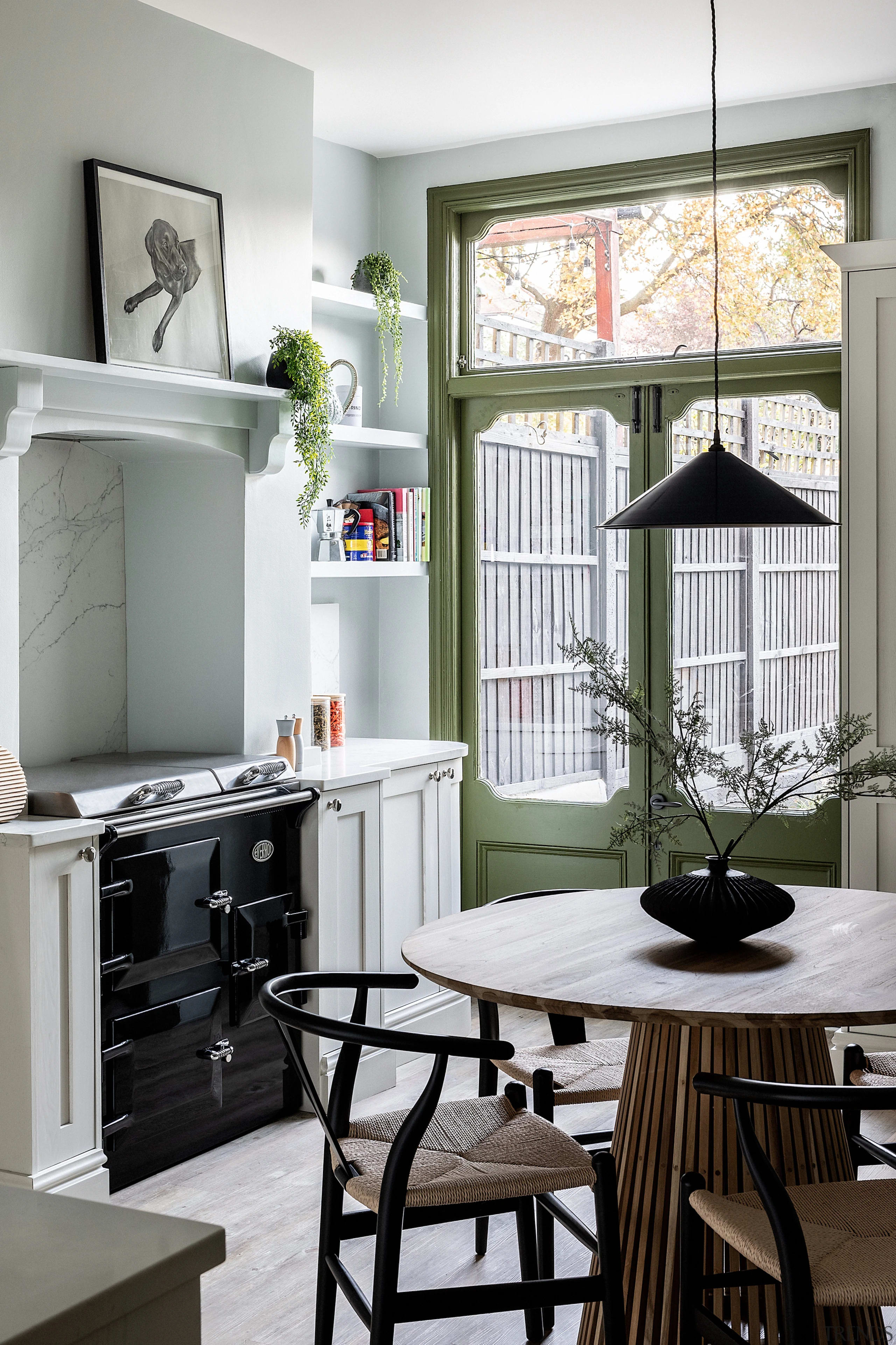 Part of a home seen on television show Moving Houses, this kitchen's bespoke cabinetry aligns with the character of a bygone era