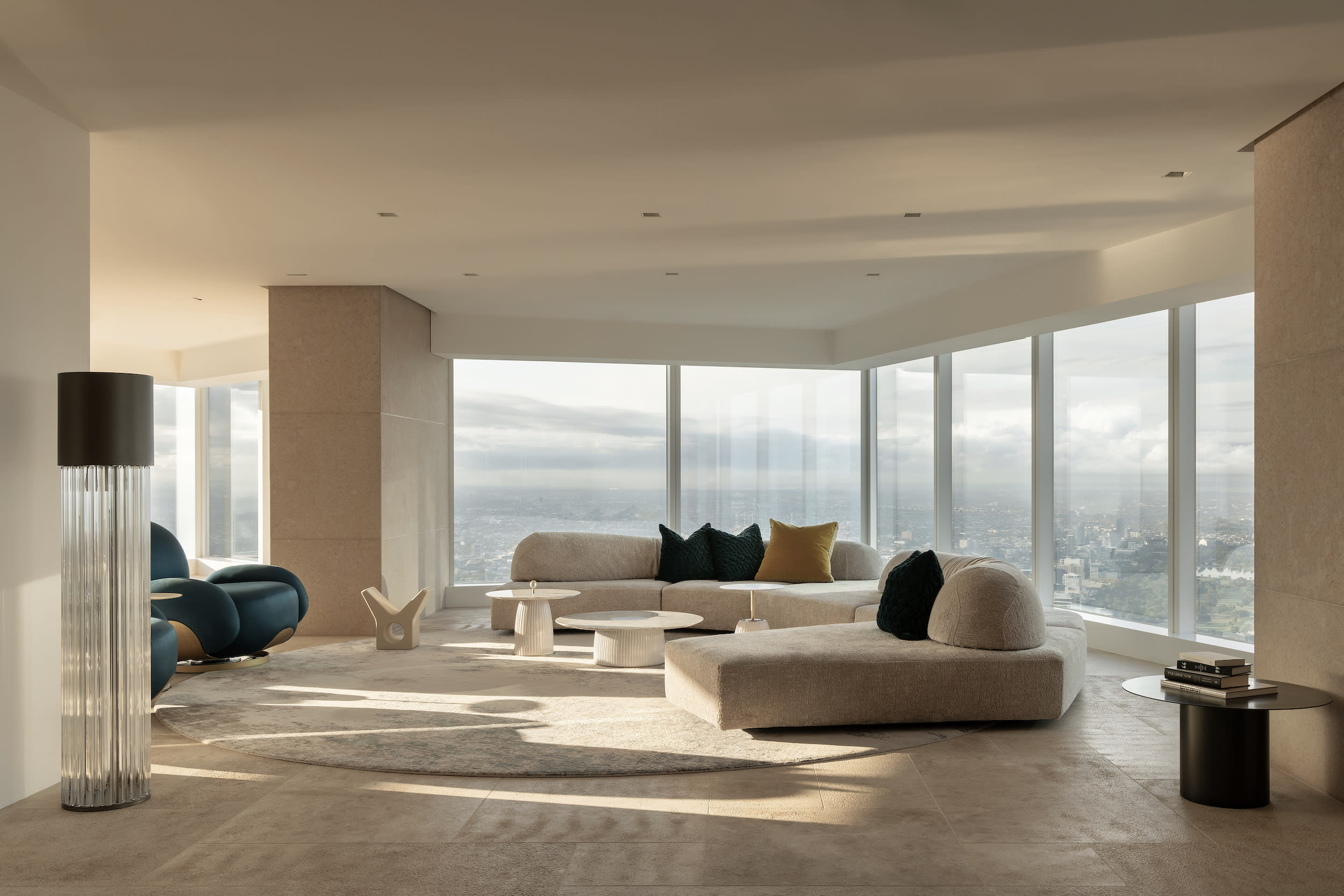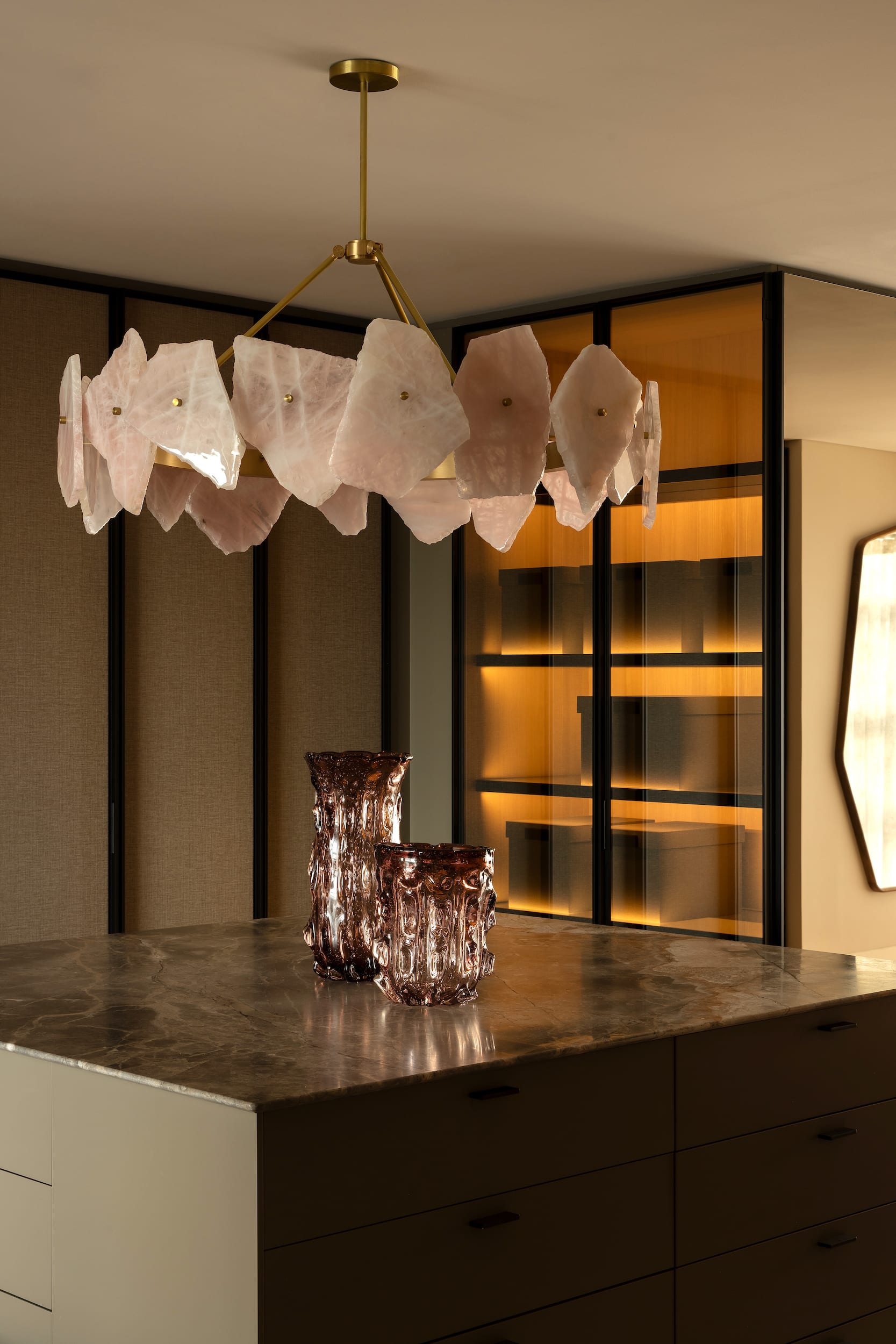 The interior designer used the most luxurious of materials from brass, marble, crystal and velvets to create a home that is refined and opulent at every turn