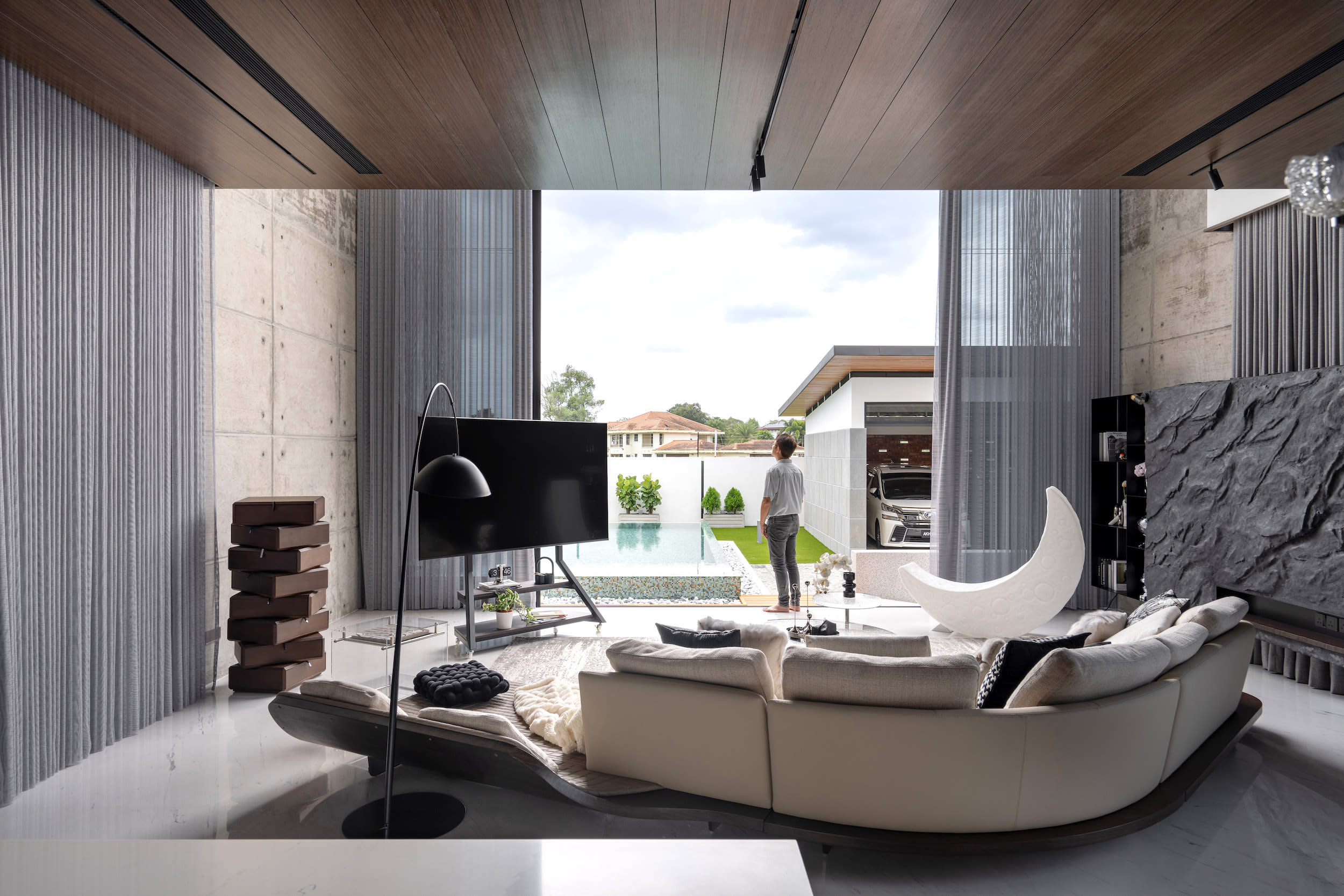 This pavilion home immerses itself with the natural world – each architectural element is designed to maximise breathtaking lake views, while respecting the surrounding environment – lower level volumes float over the land