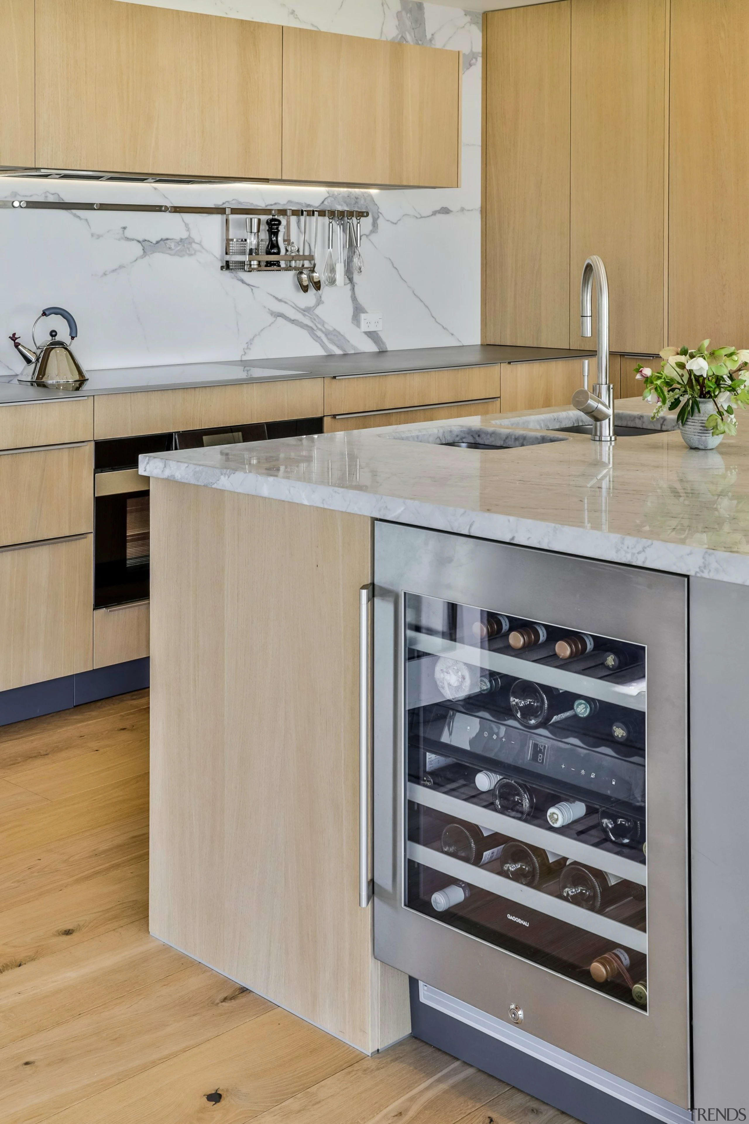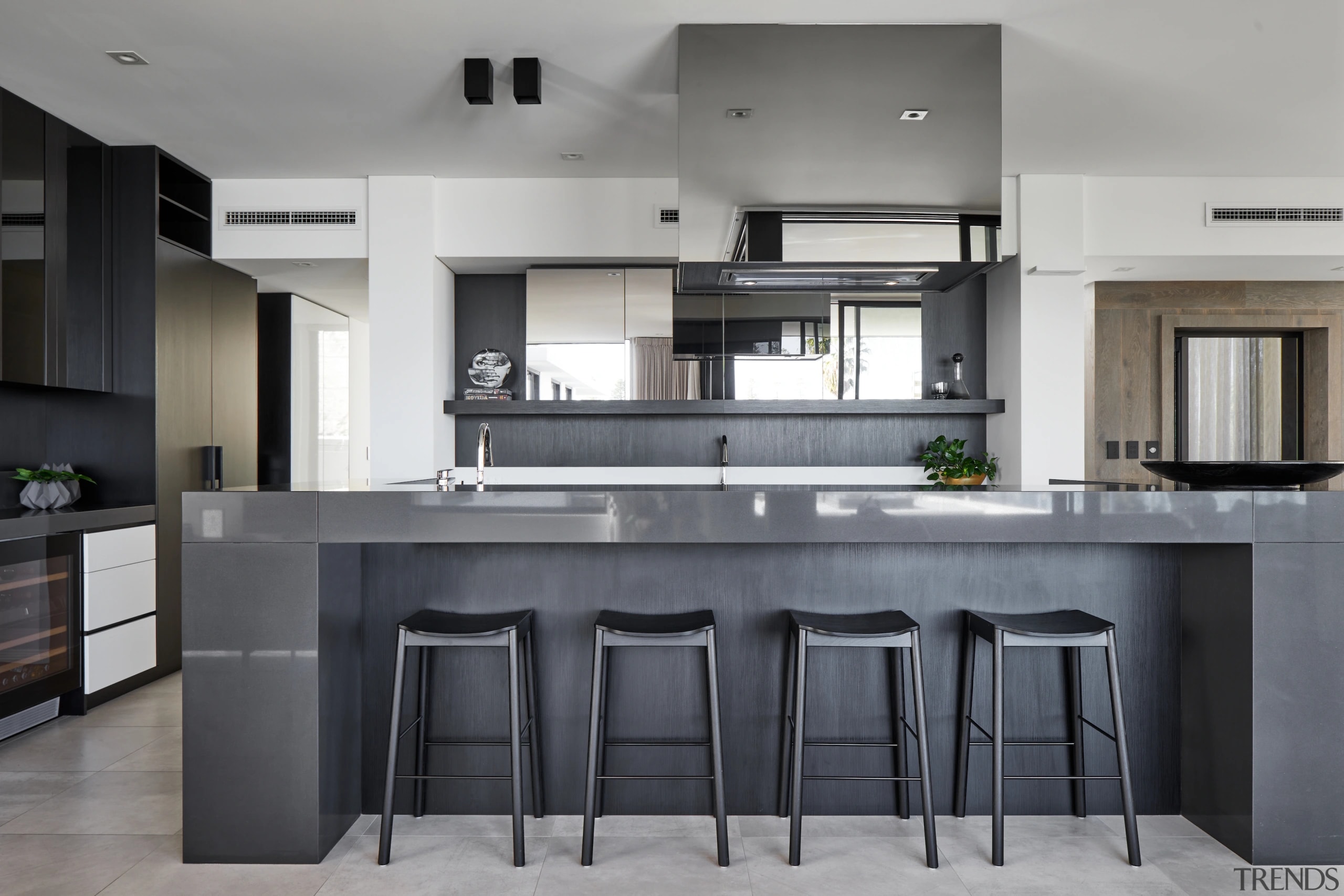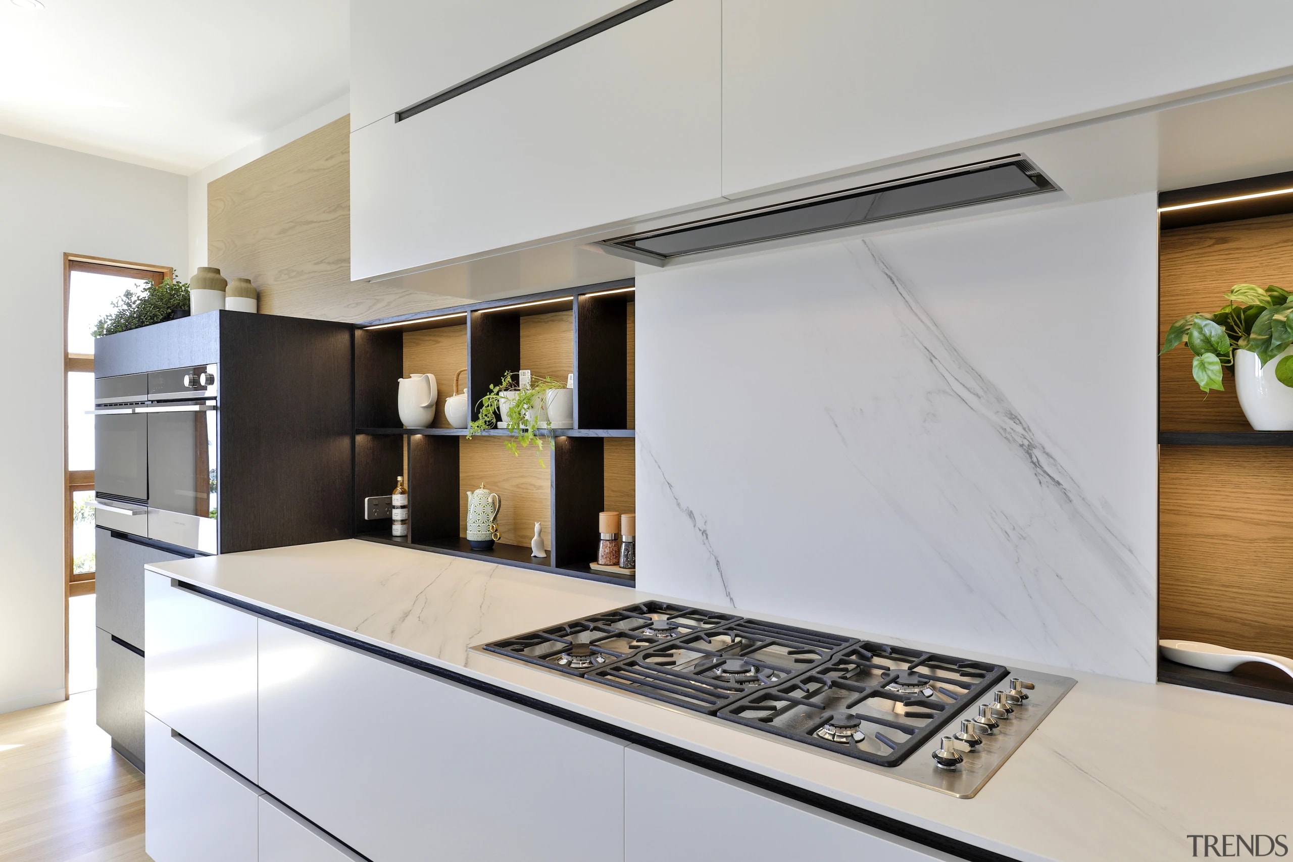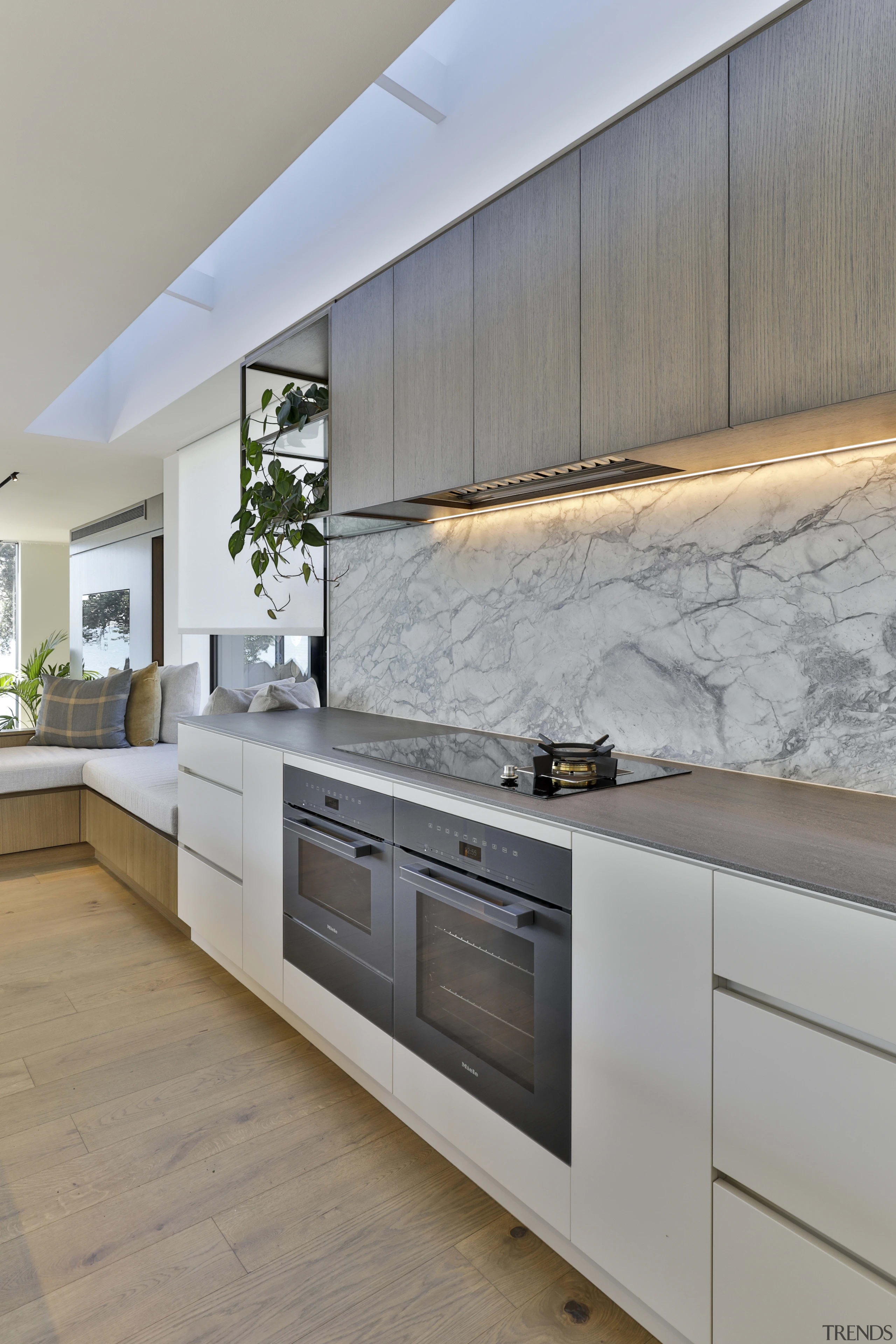 How best to accommodate a functional kitchen within a modest-sized, open-plan apartment? This design is a great example