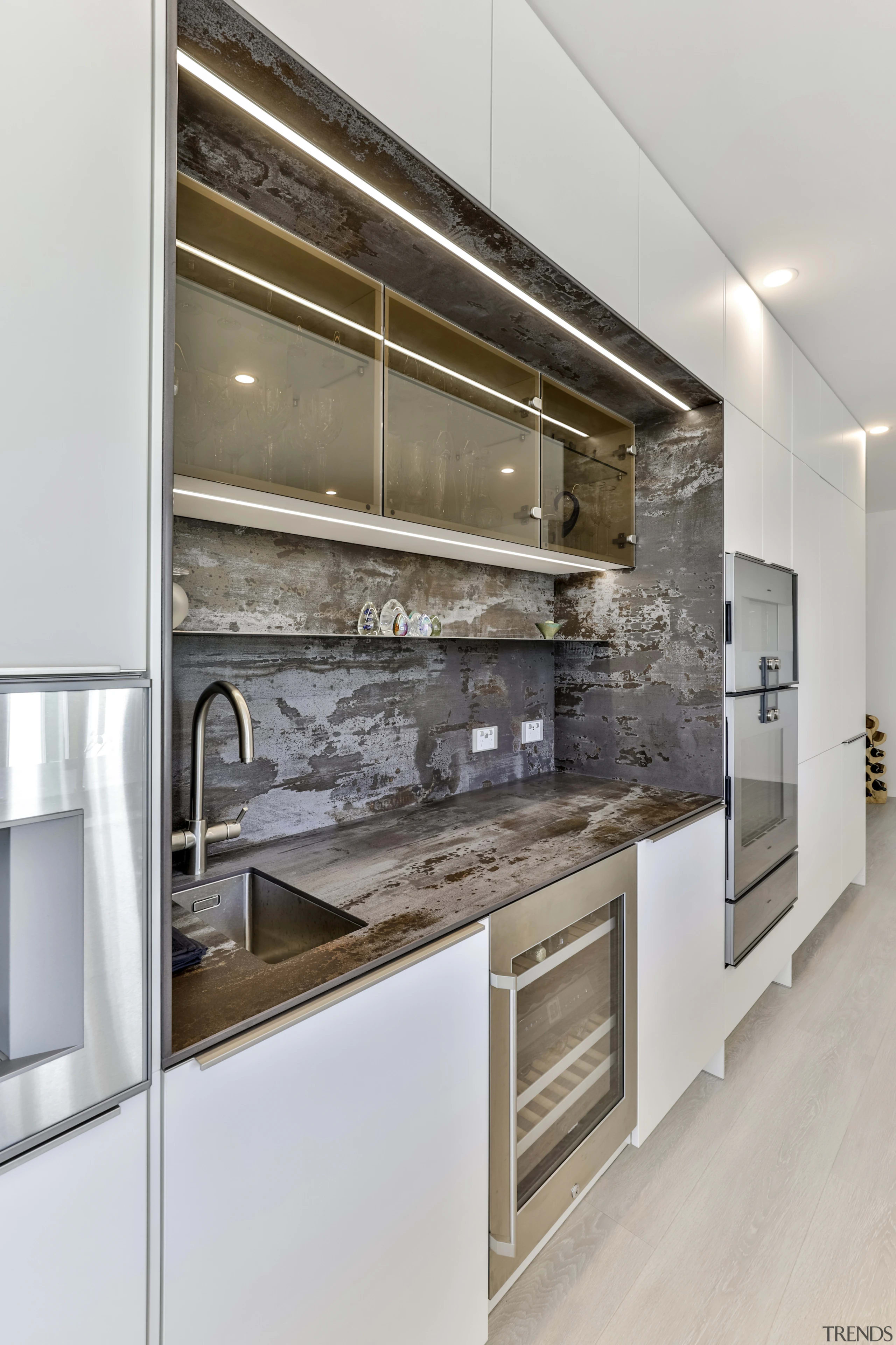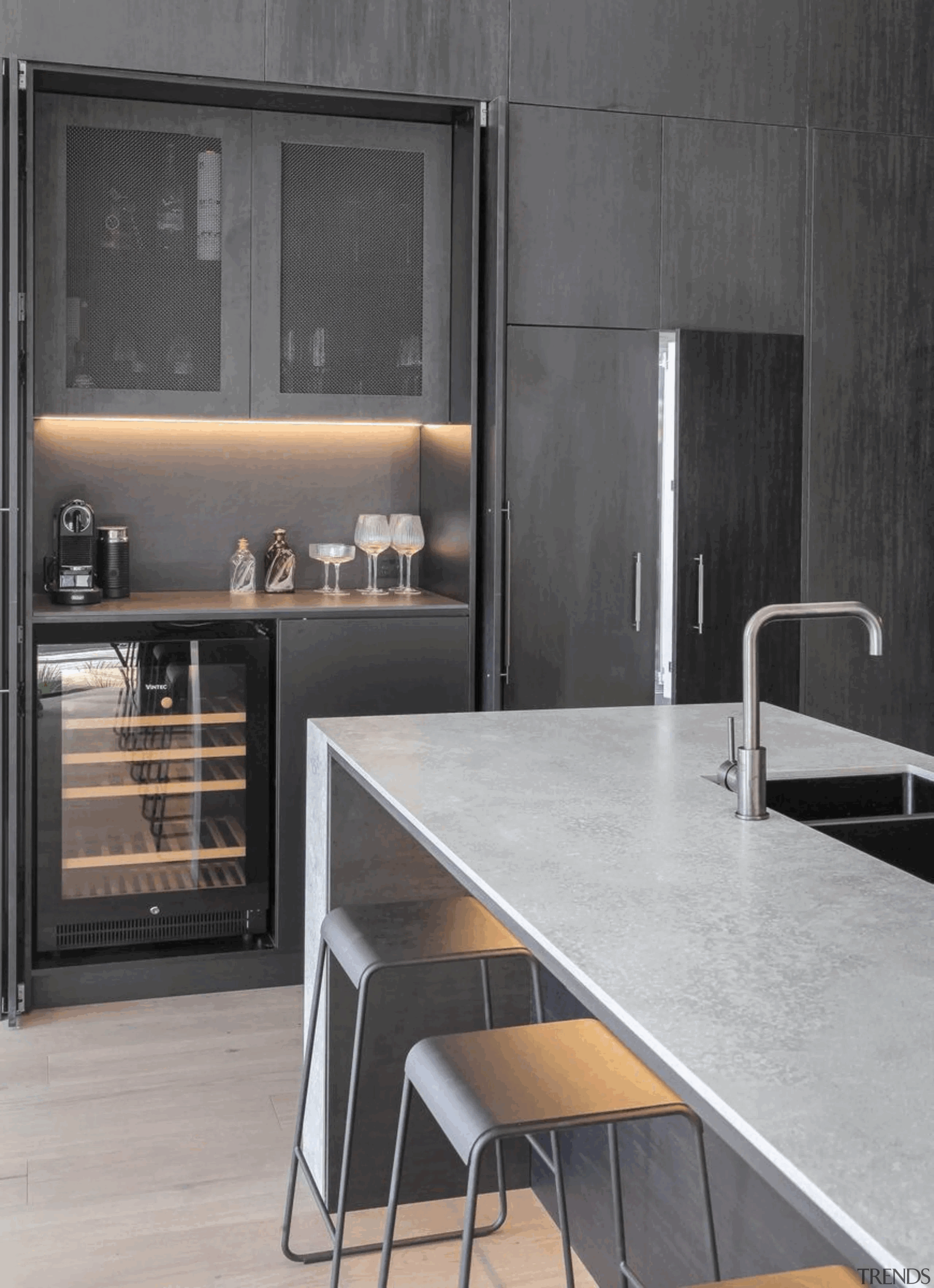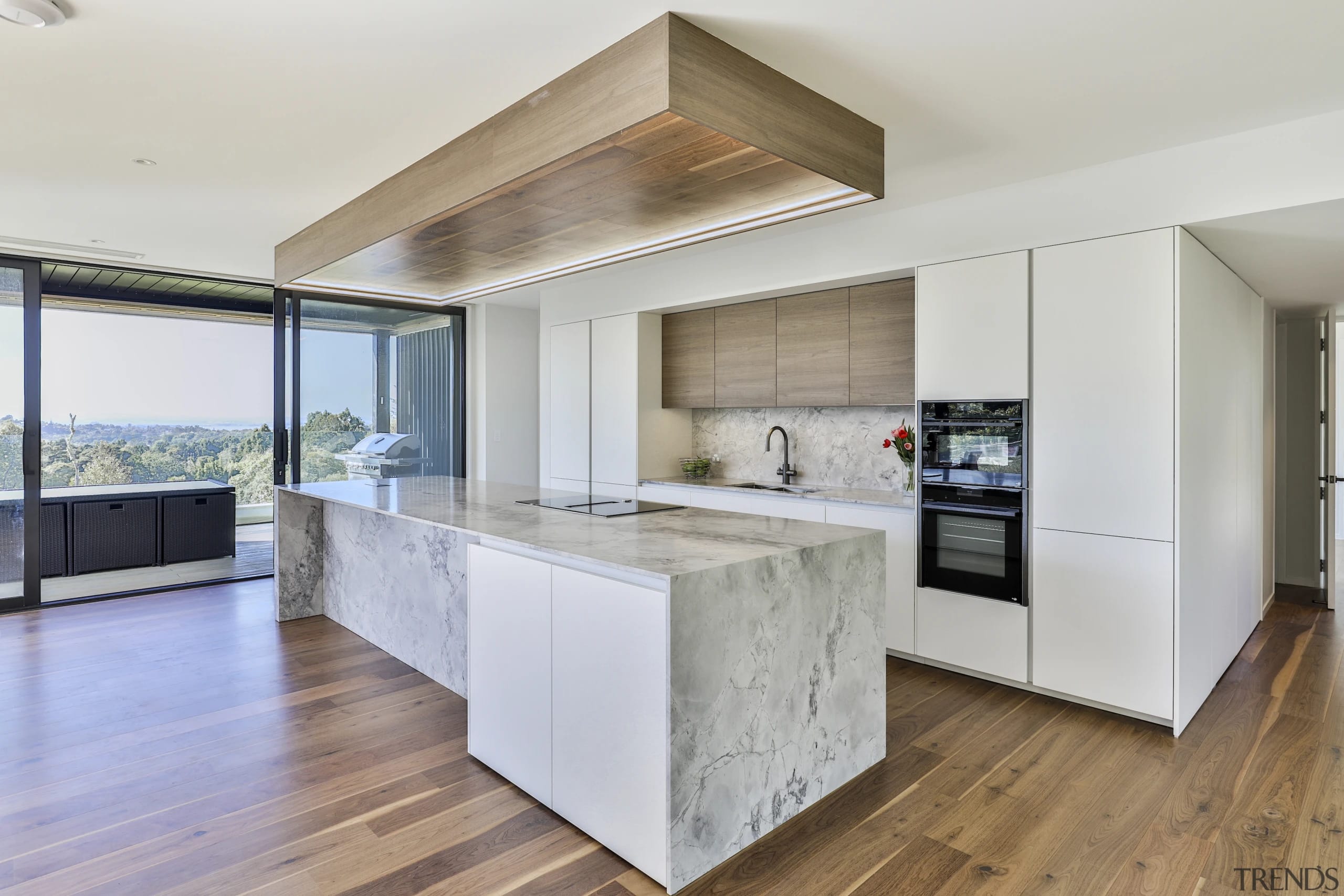 How best to accommodate a functional kitchen within a modest-sized, open-plan apartment? This design is a great example