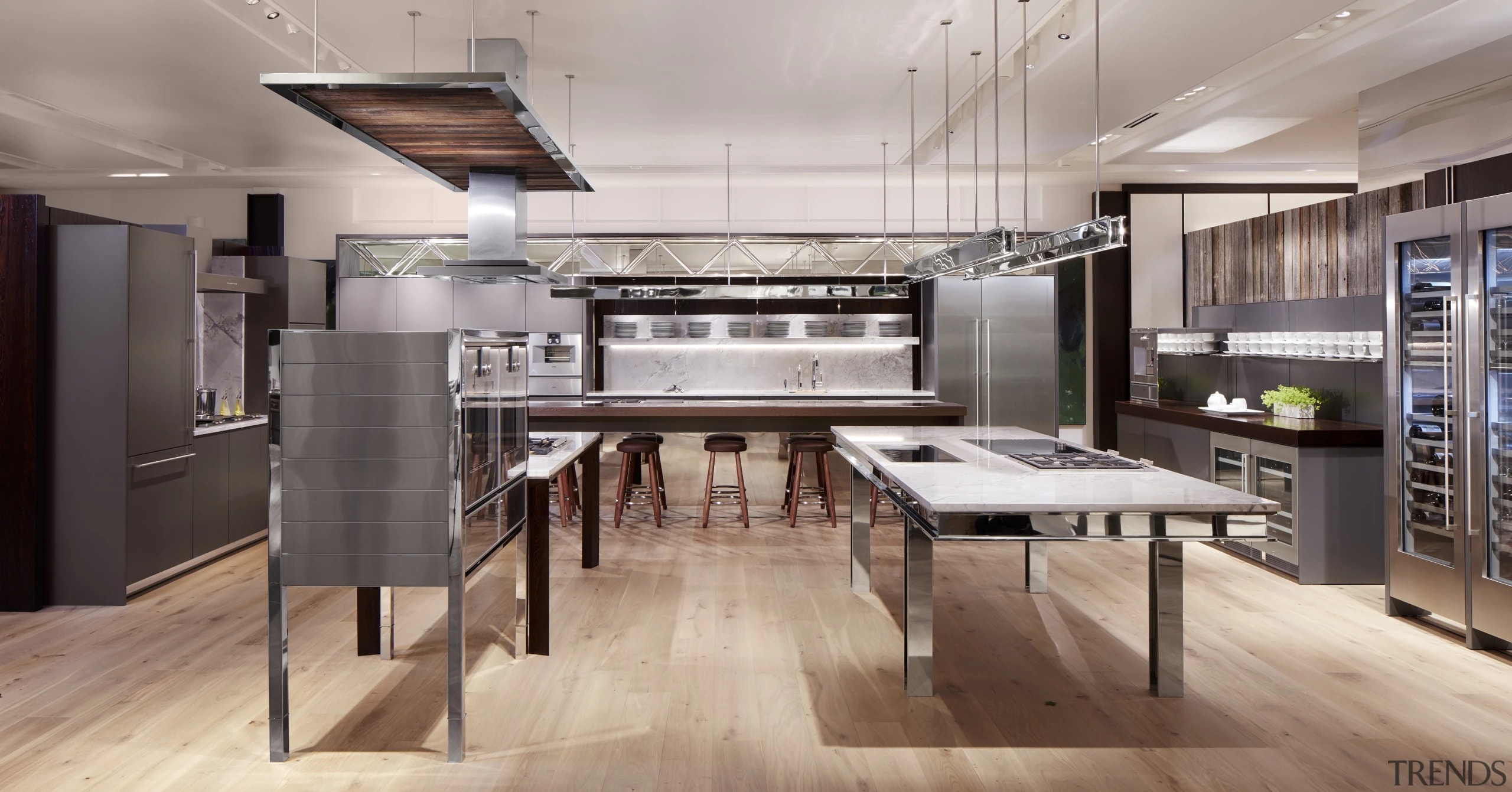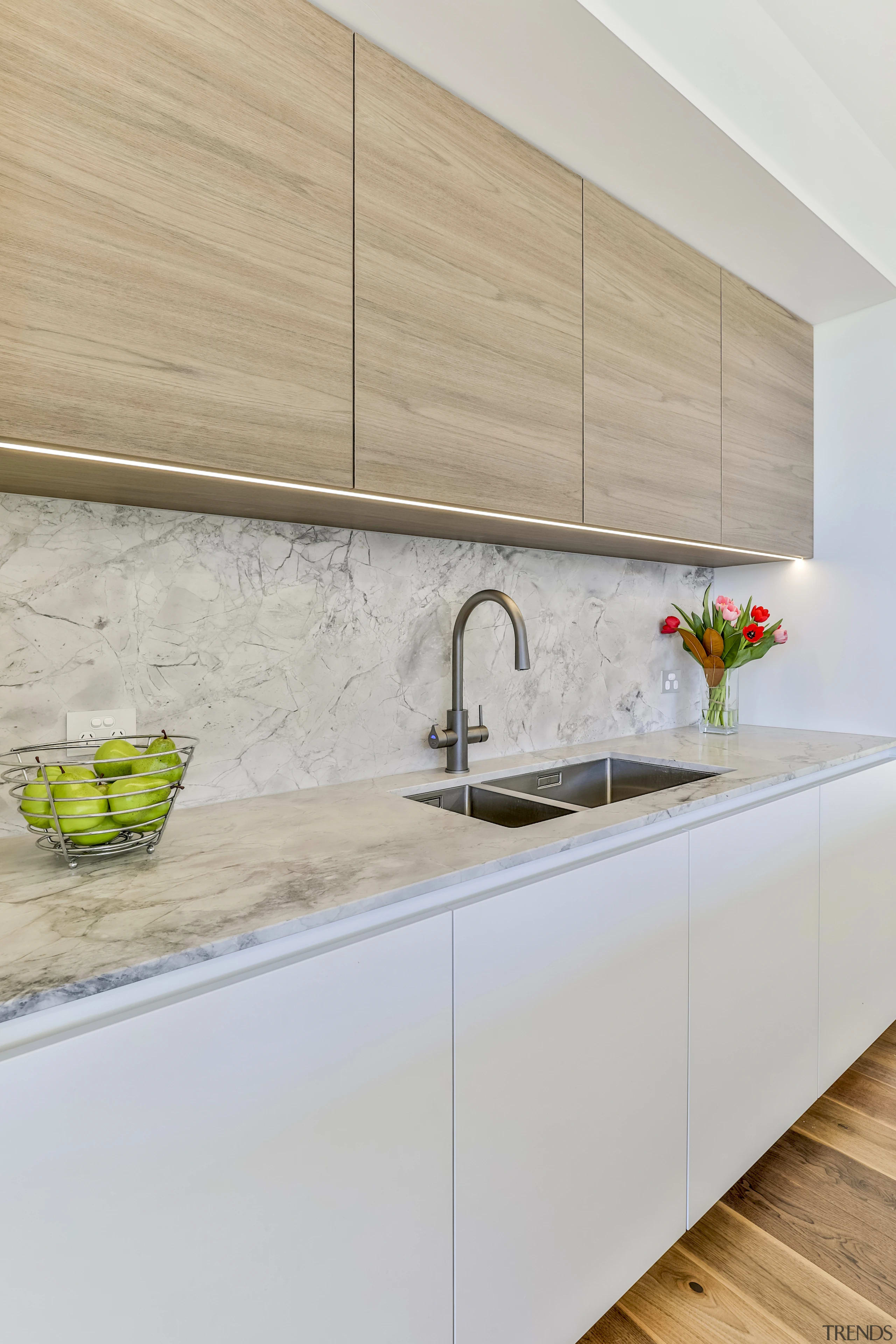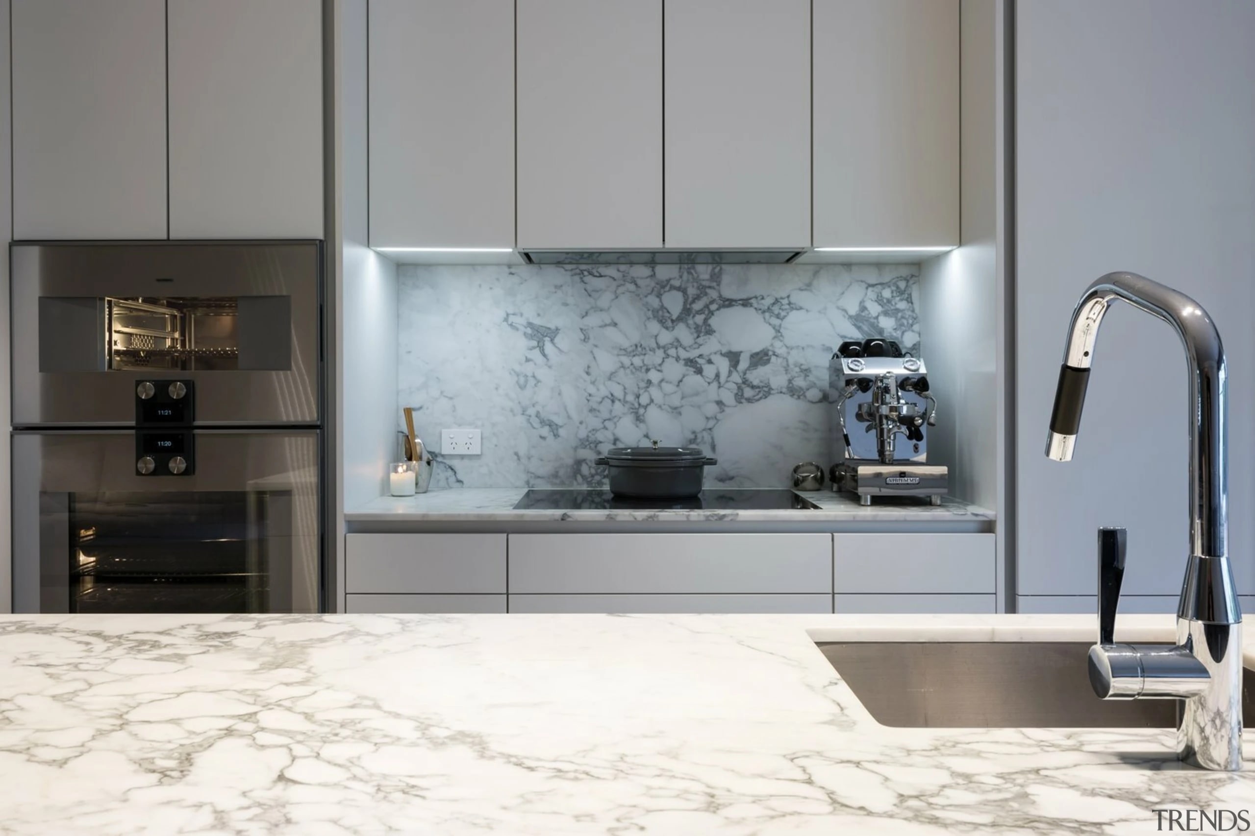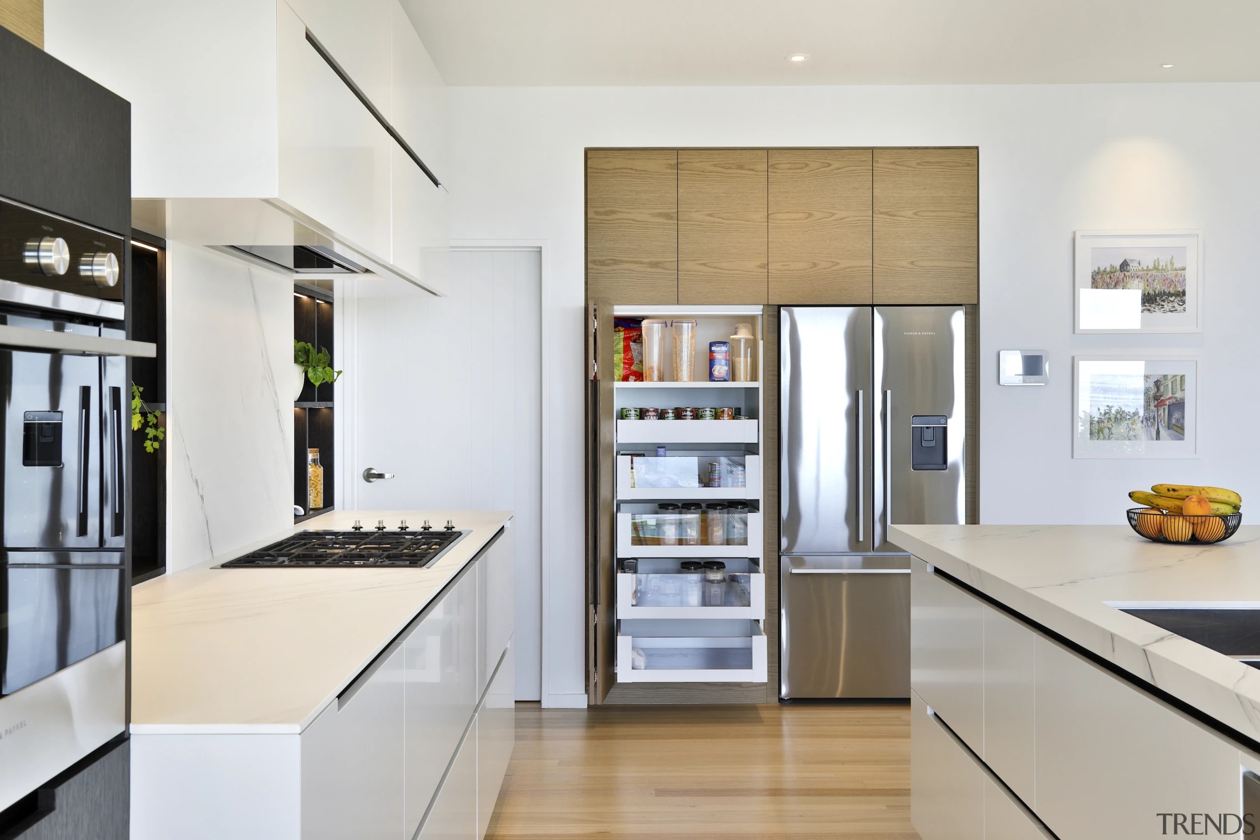 How best to accommodate a functional kitchen within a modest-sized, open-plan apartment? This design is a great example