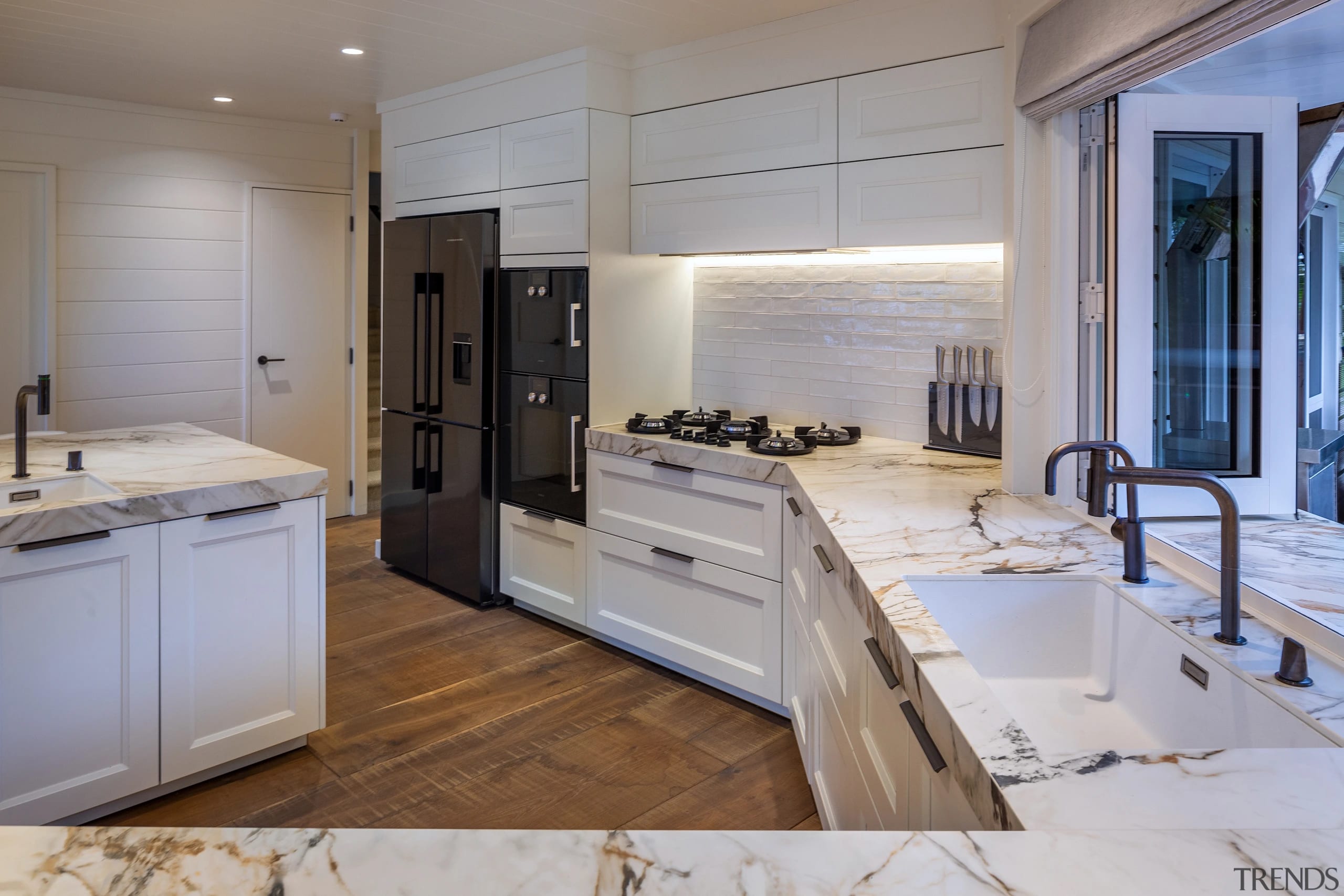 The owner was quite specific that they wanted a free-standing fridge freezer, as they believed that the beach house gets very warm, and a free-standing appliance would better allow the fridge to cool itself. The gas cooktop was designed to fit according to NZ Gas Regulations, with the correct distances from the sides and back, placed in the perfect location for maximum extraction.