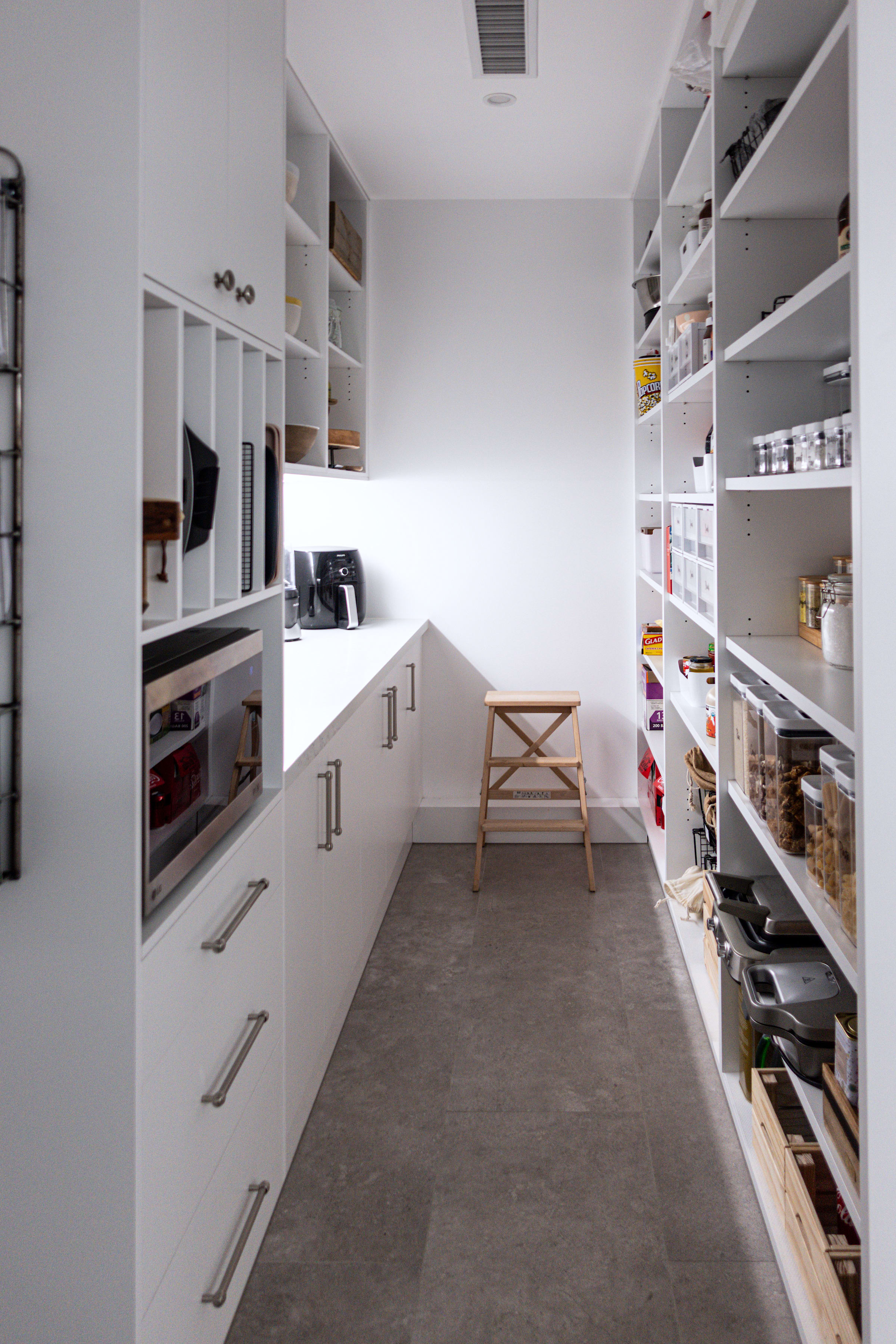To optimise functionality and organisation, a spacious butler’s kitchen is discreetly tucked away behind barn doors.