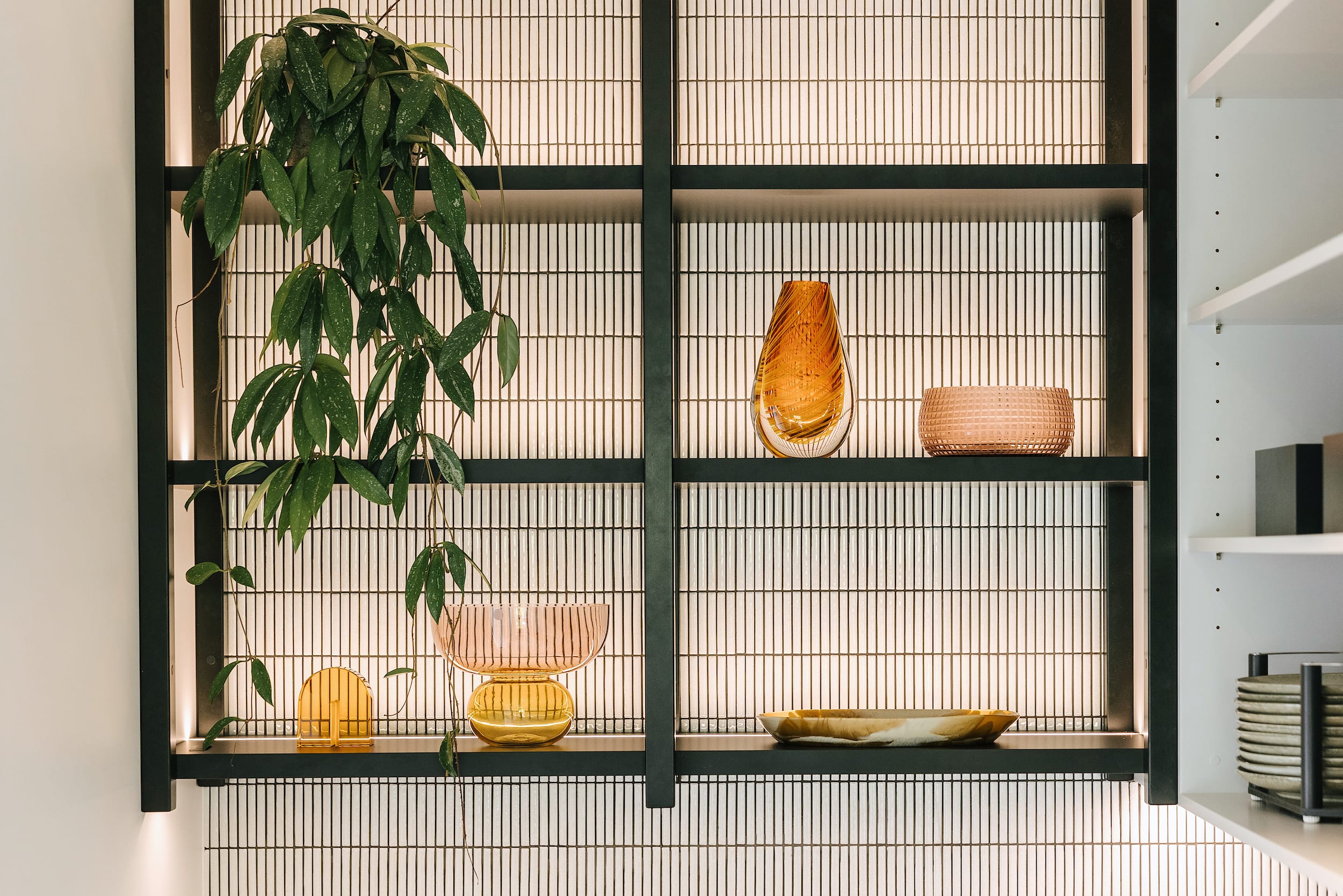 Lighting has been included across this project within cabinetry to allow the light play of the lineal elements and to bring both task and ambient lighting to the space as a whole.