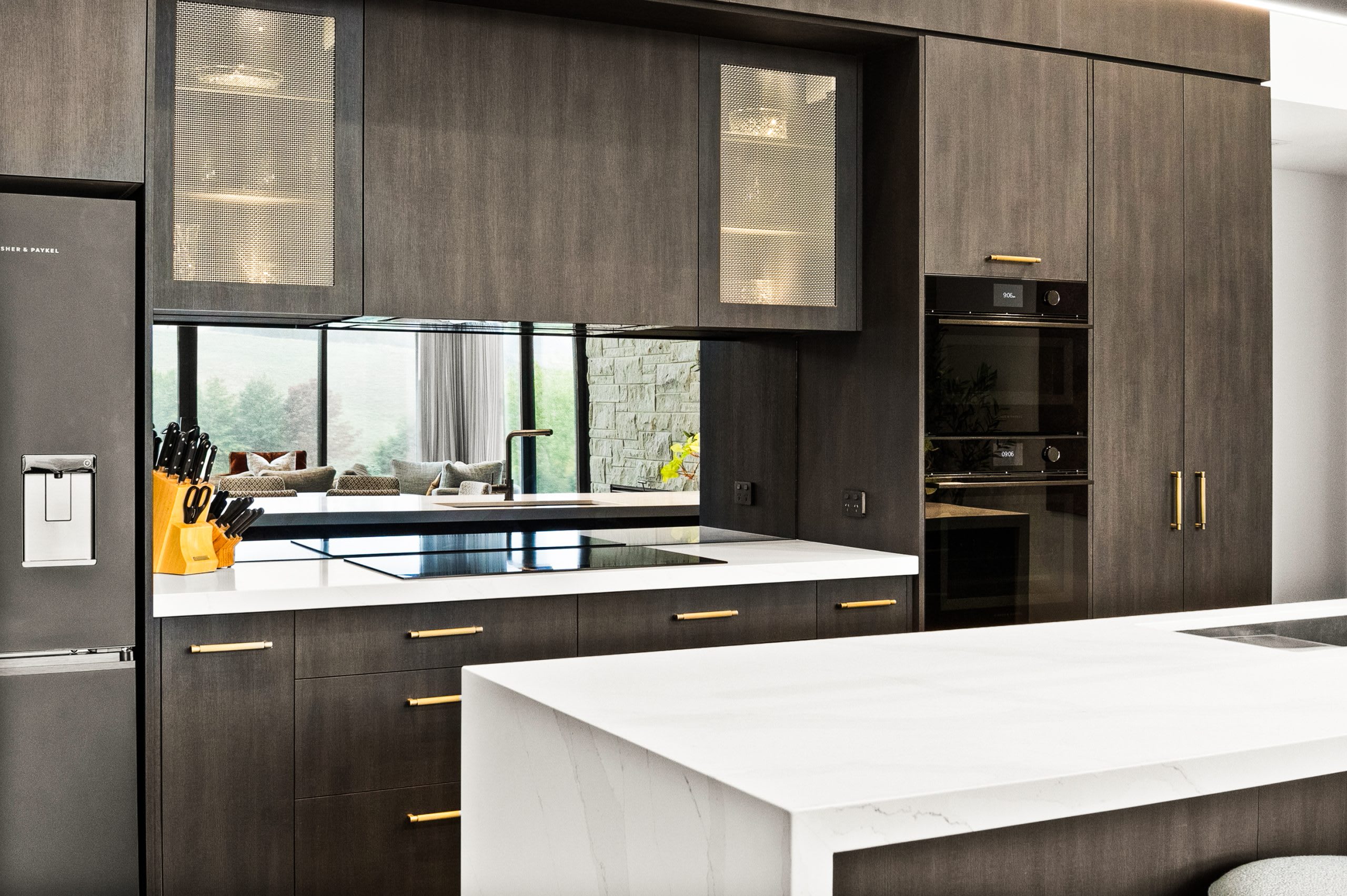 A smoked mirror backsplash subtly reflects the striking Te Mata Peak, introducing depth and mood while enhancing the sense of place.
