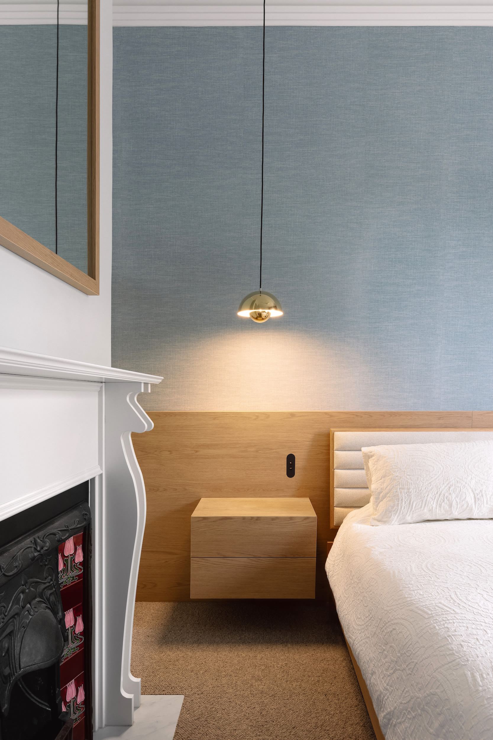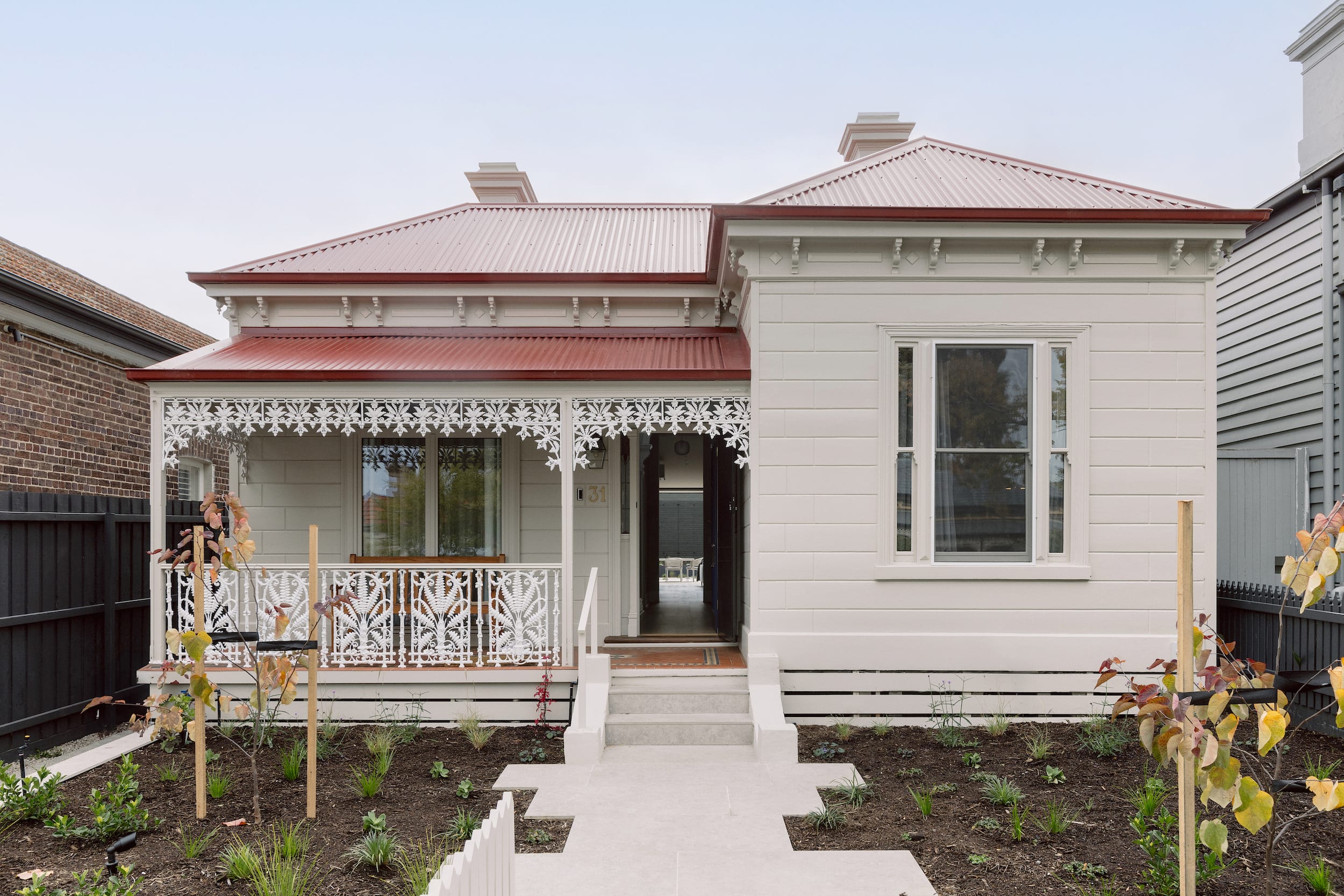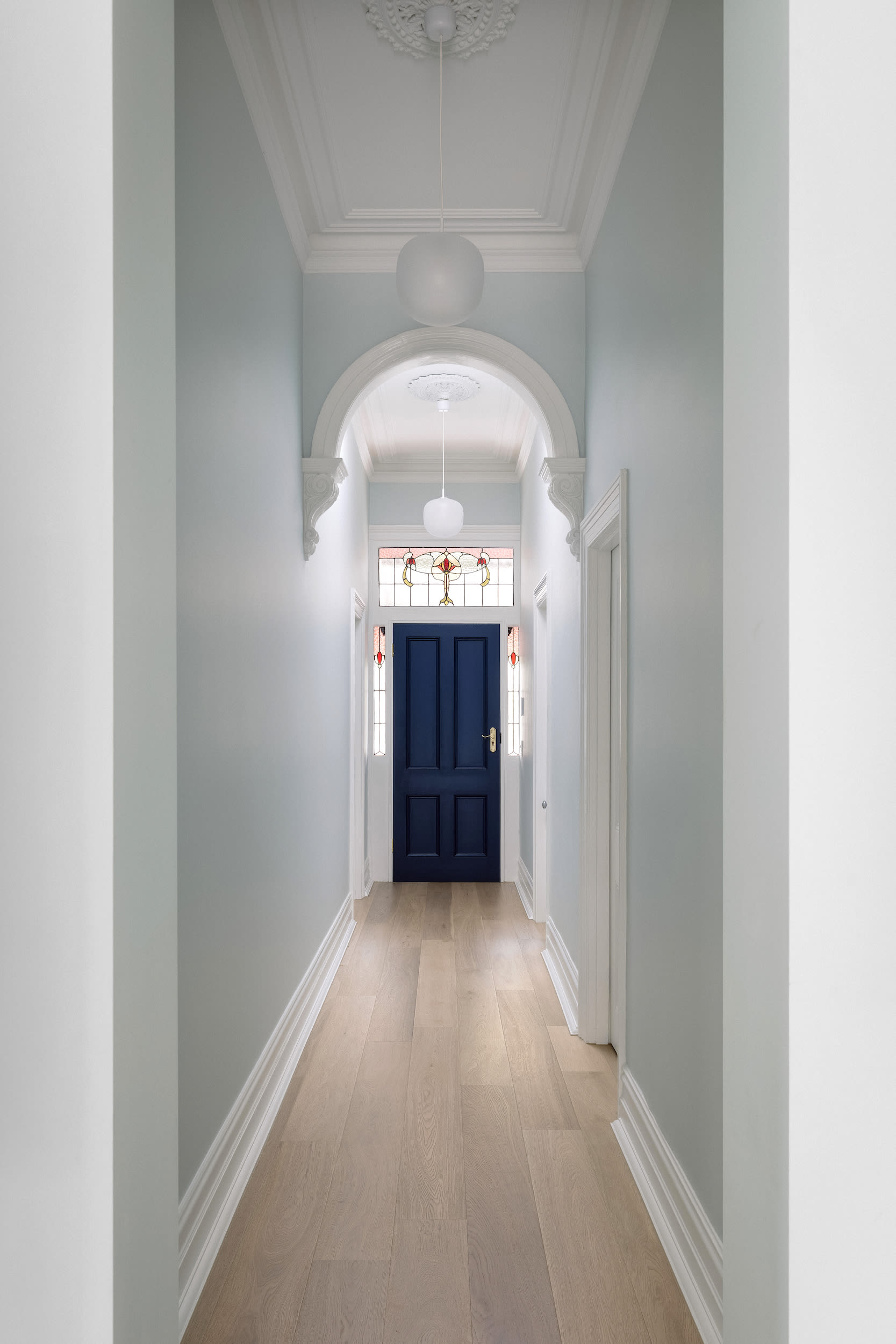 The original front rooms have been retained and restored, repurposed as a new master bedroom and ensuite, home office and guest bedroom, refreshed by new internal finishes and light fittings.