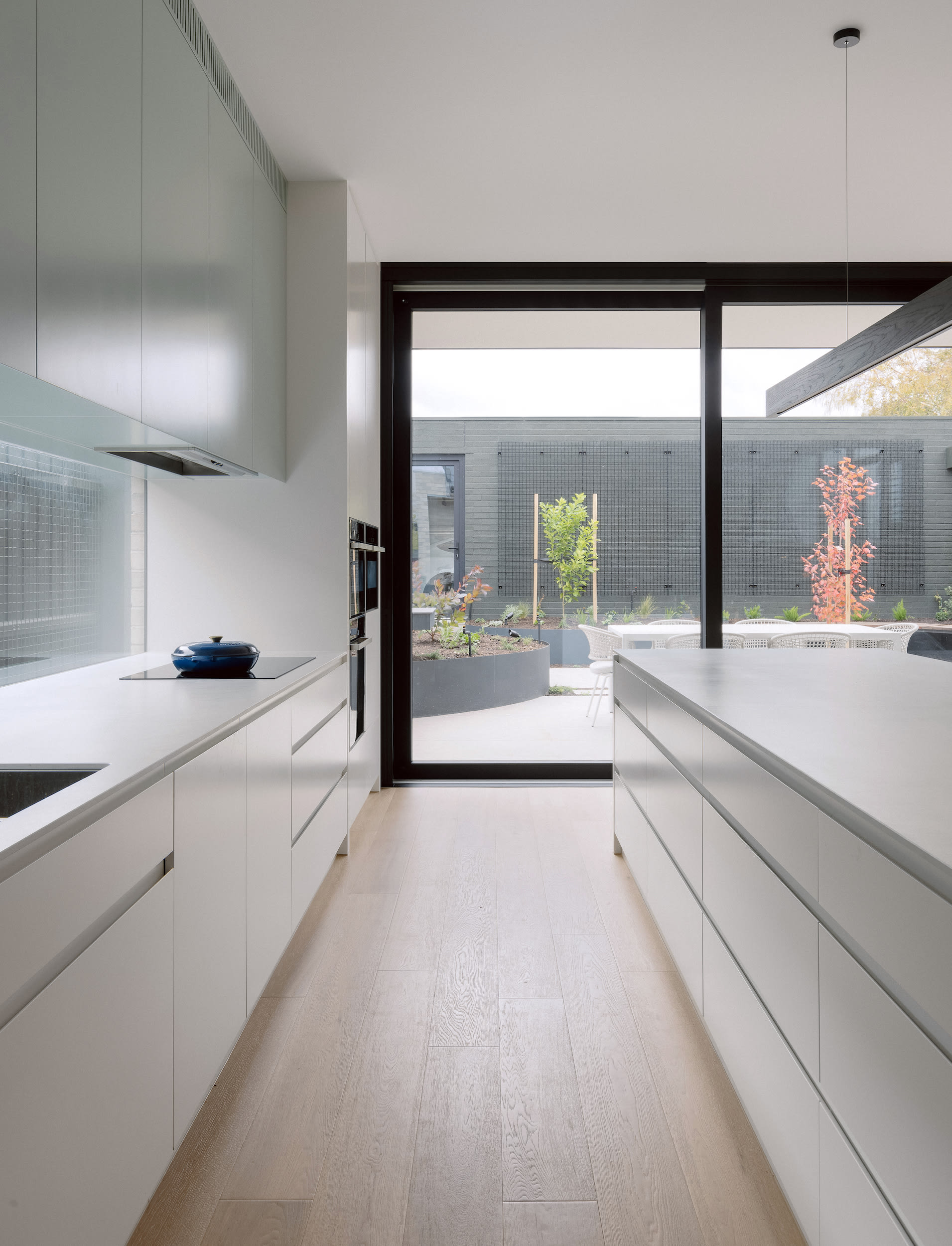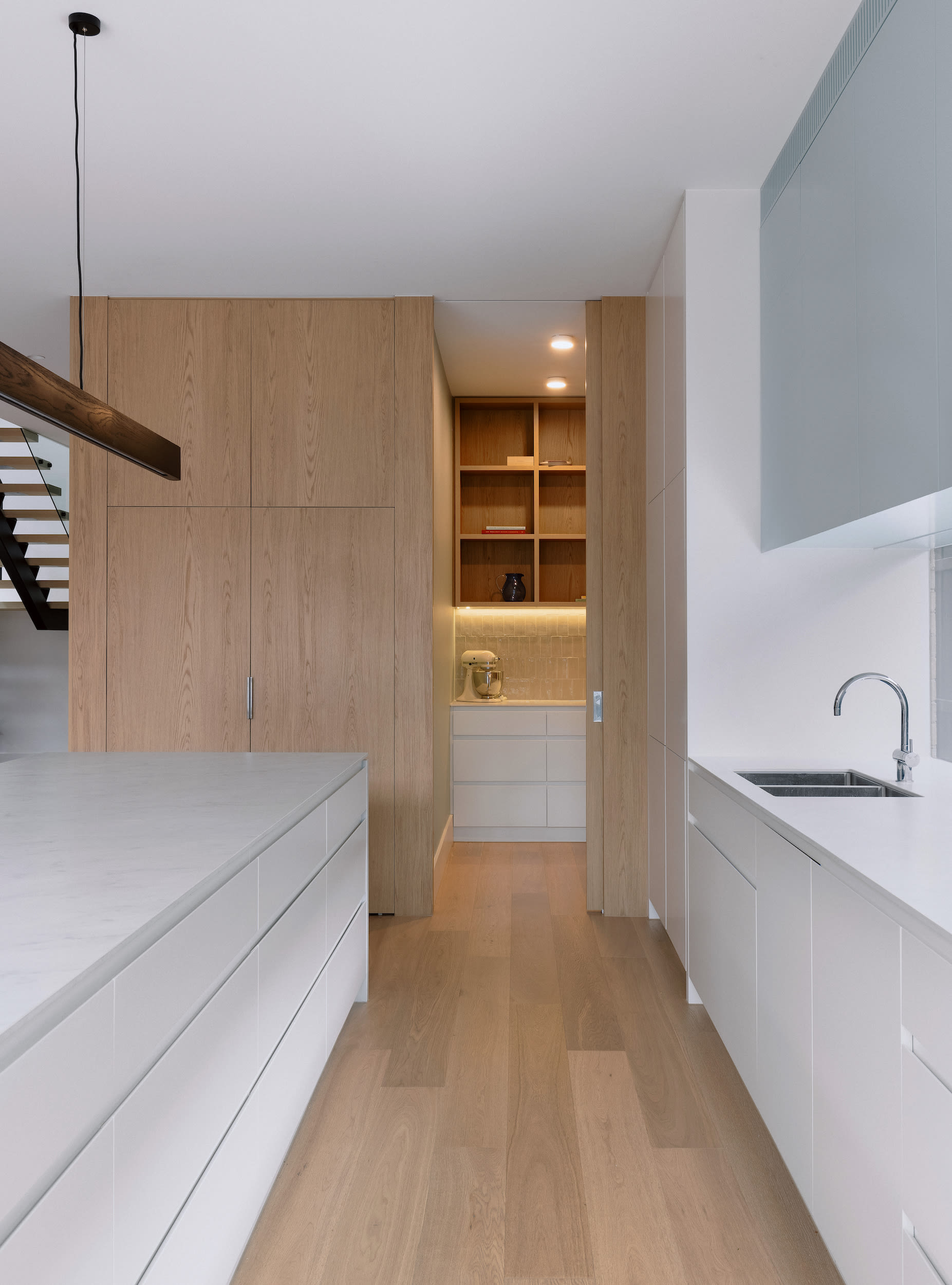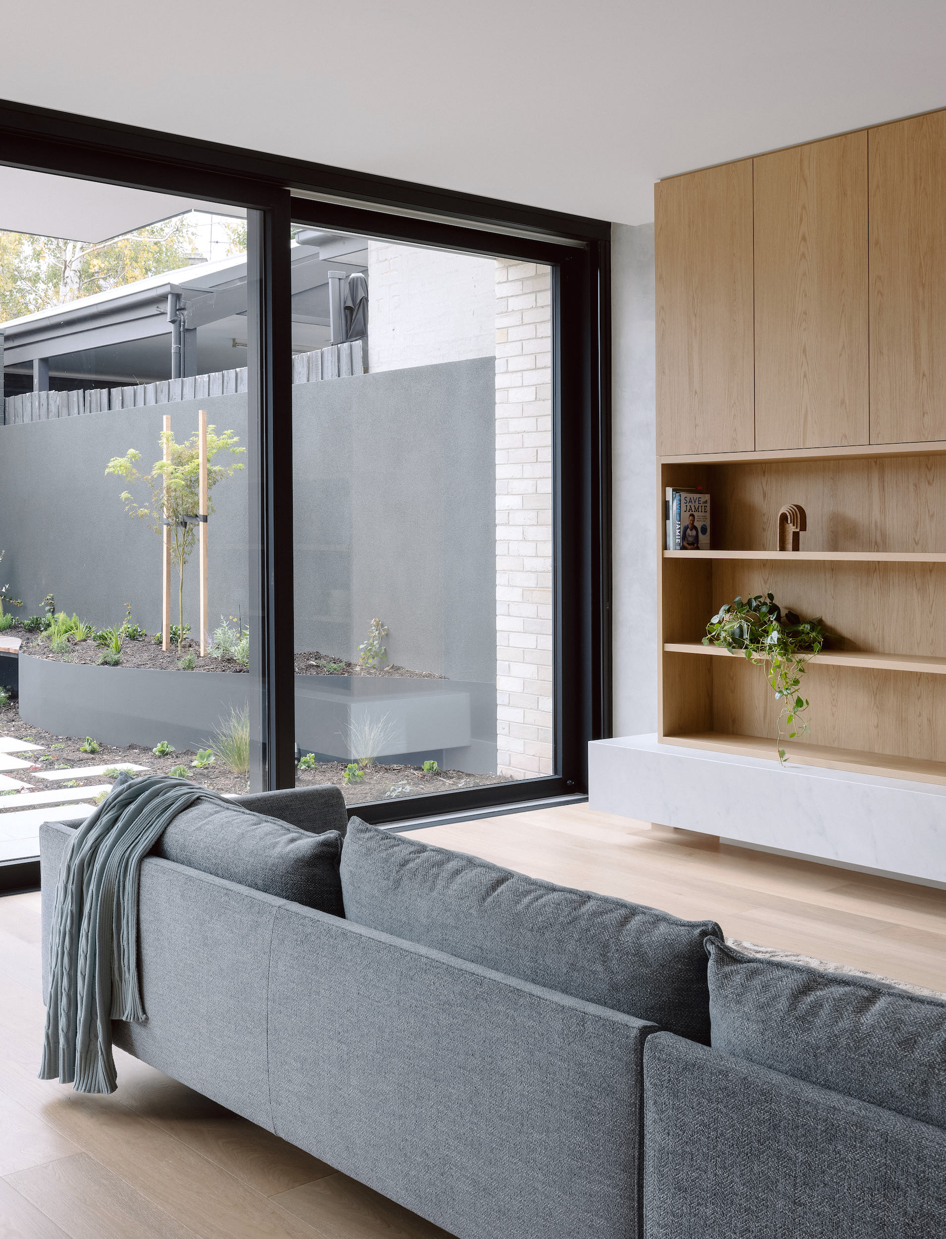 Responding to the northerly rear orientation, the new generous kitchen, dining and living spaces have been located to the rear, connecting seamlessly to the backyard via large sliding stacker doors.