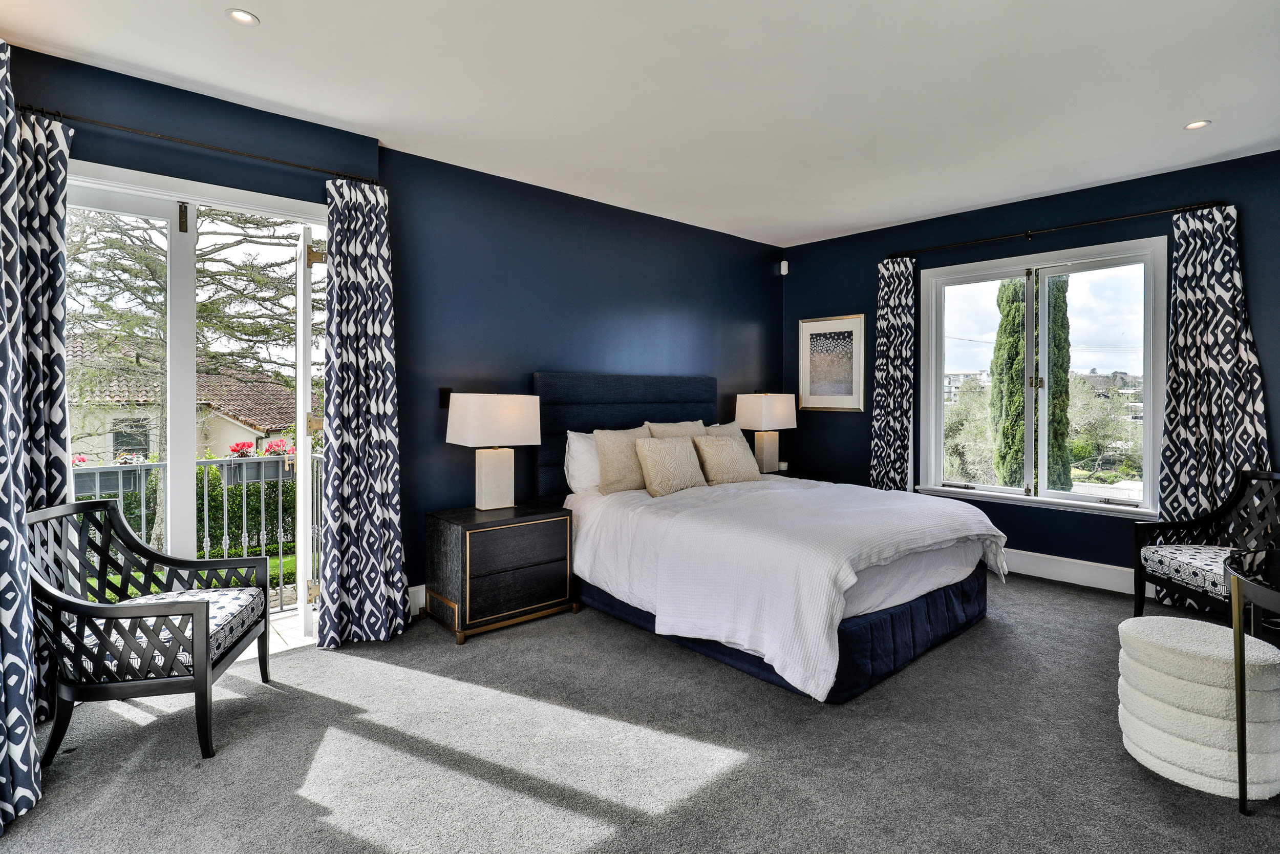 The designer also added midnight blue, taupe and splashes of colour in artwork and lighting to soften the look.