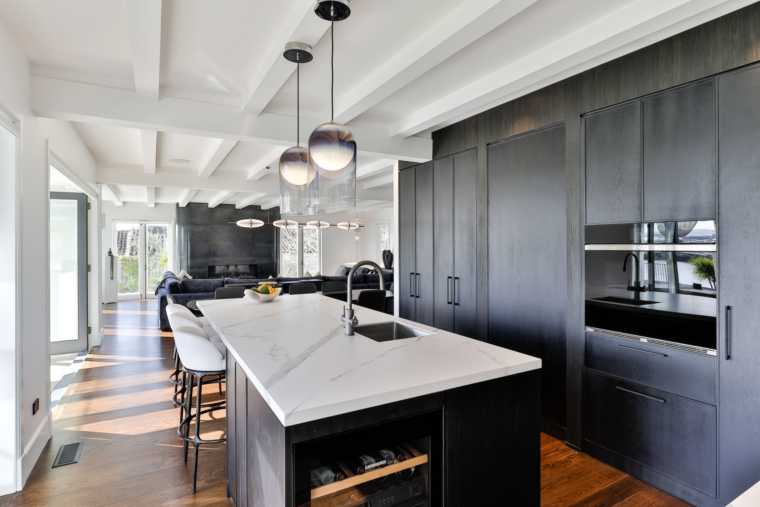 The cooktop is totally invisible to the eye, enhancing the sleek, modernist appeal of the kitchen and beyond.