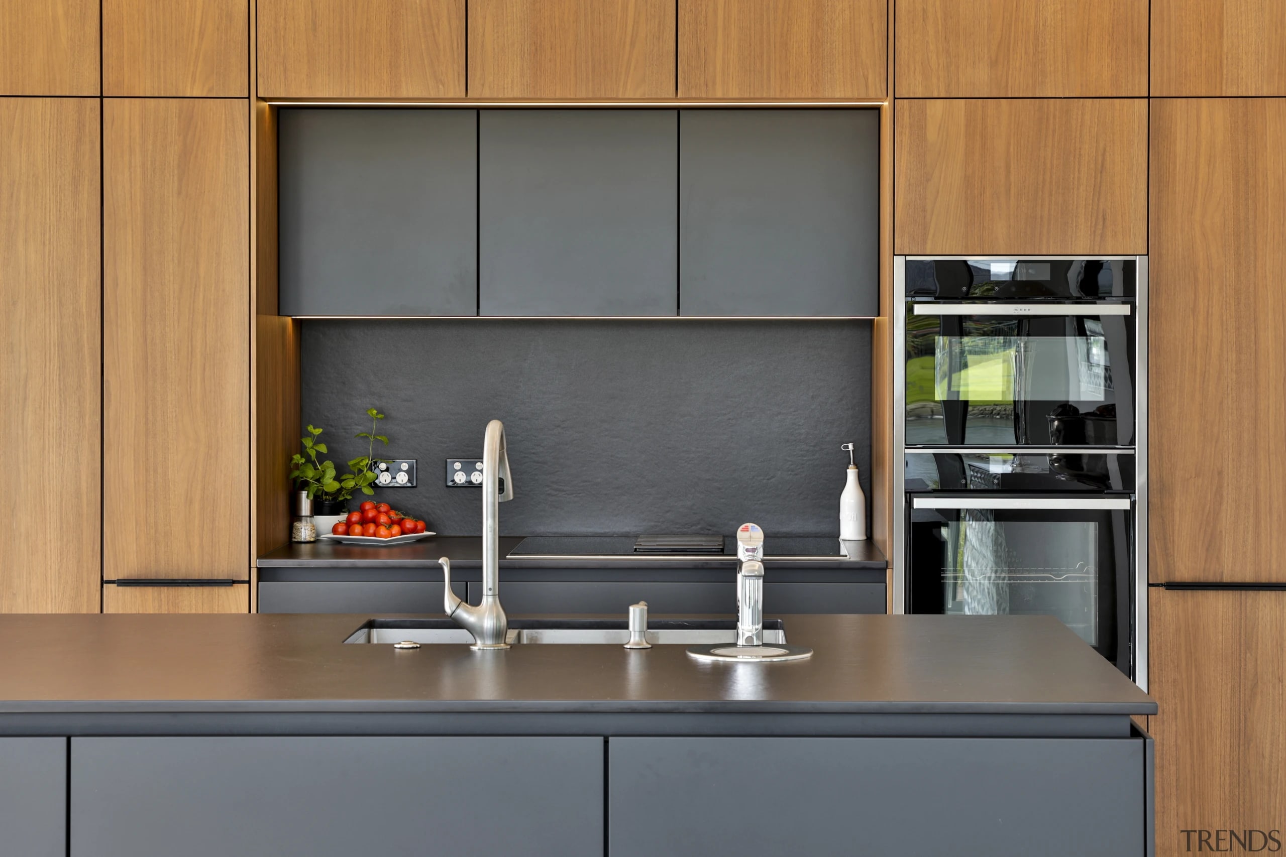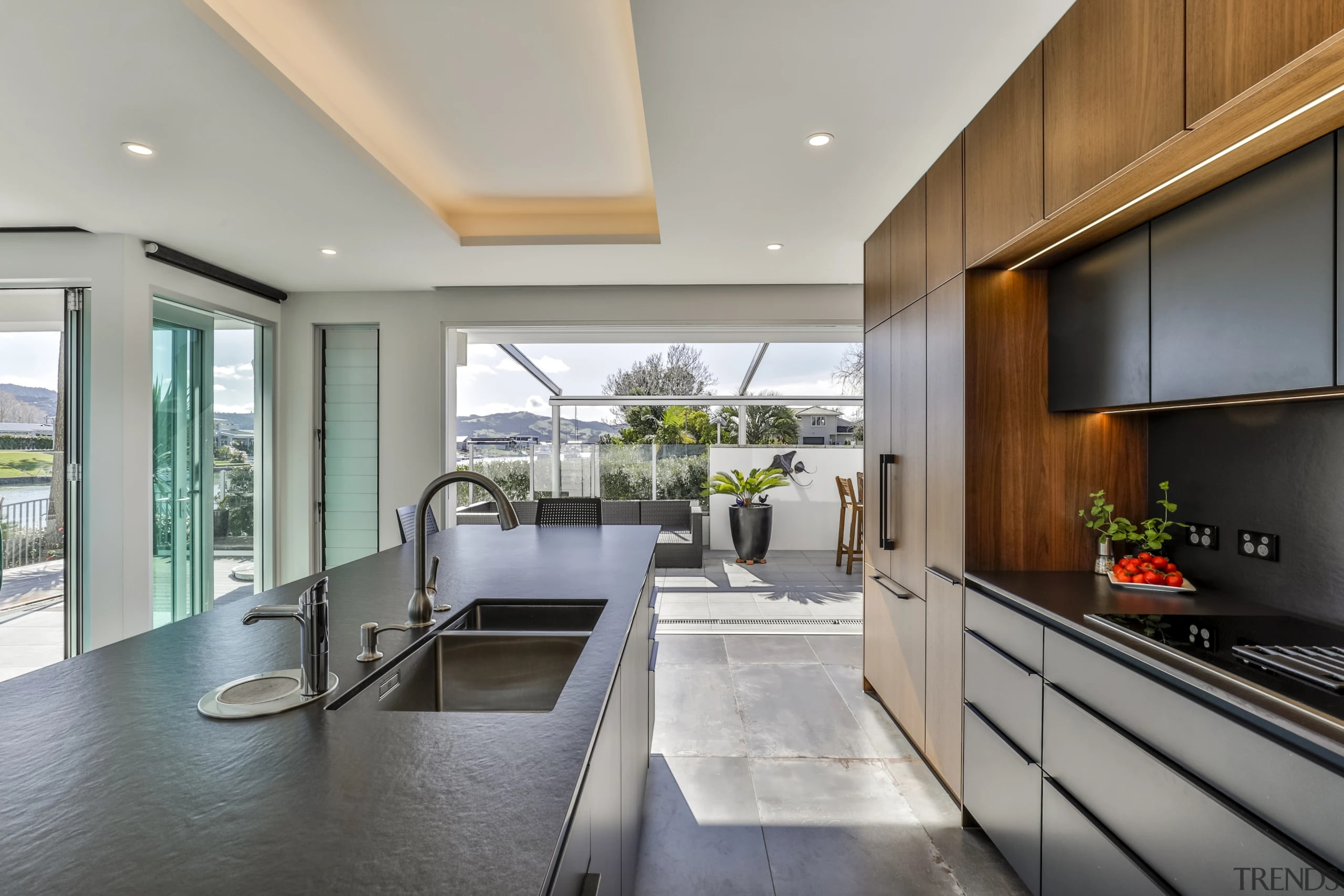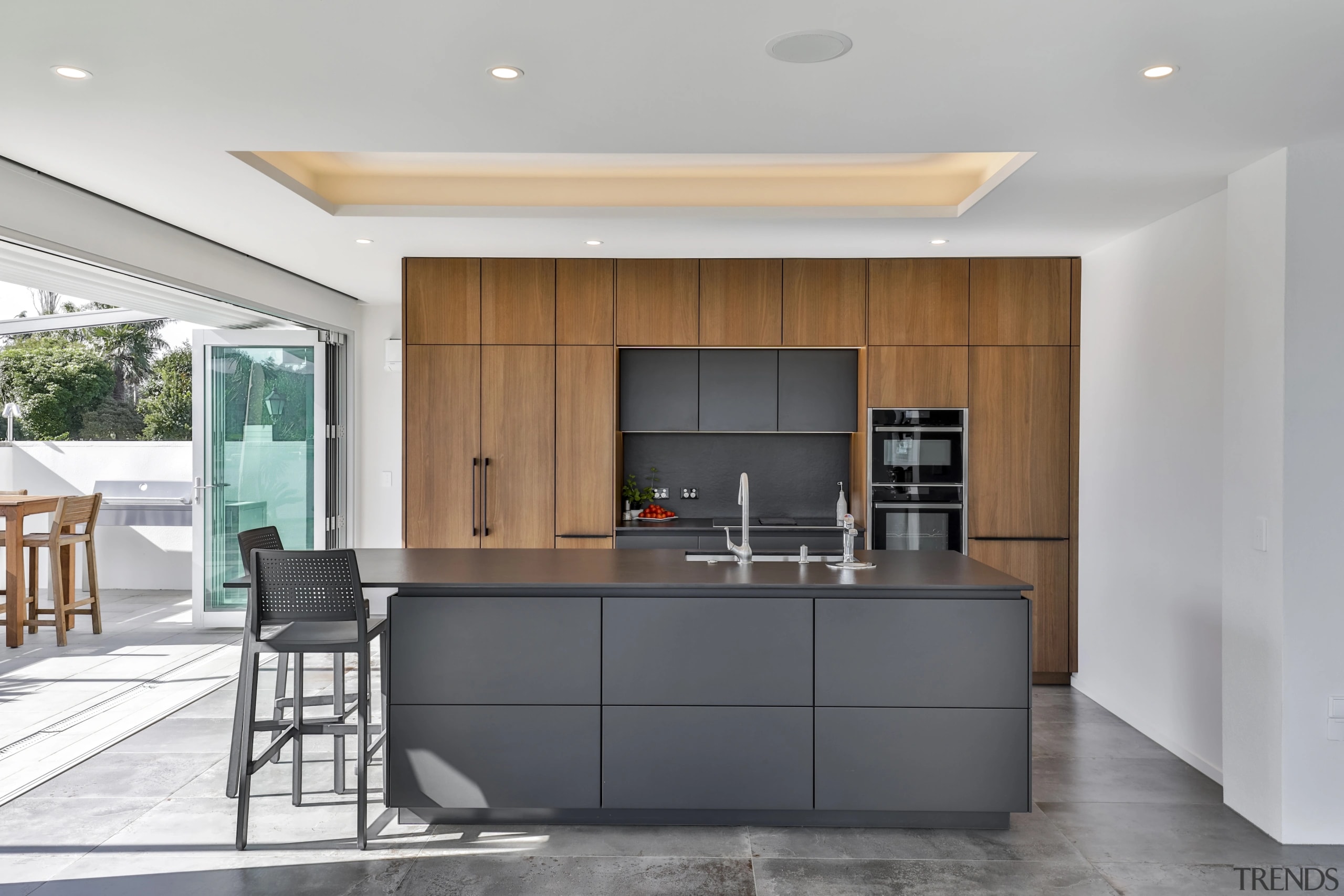 This black and wood kitchen melds into the home's architecture, while also making a statement all of its own