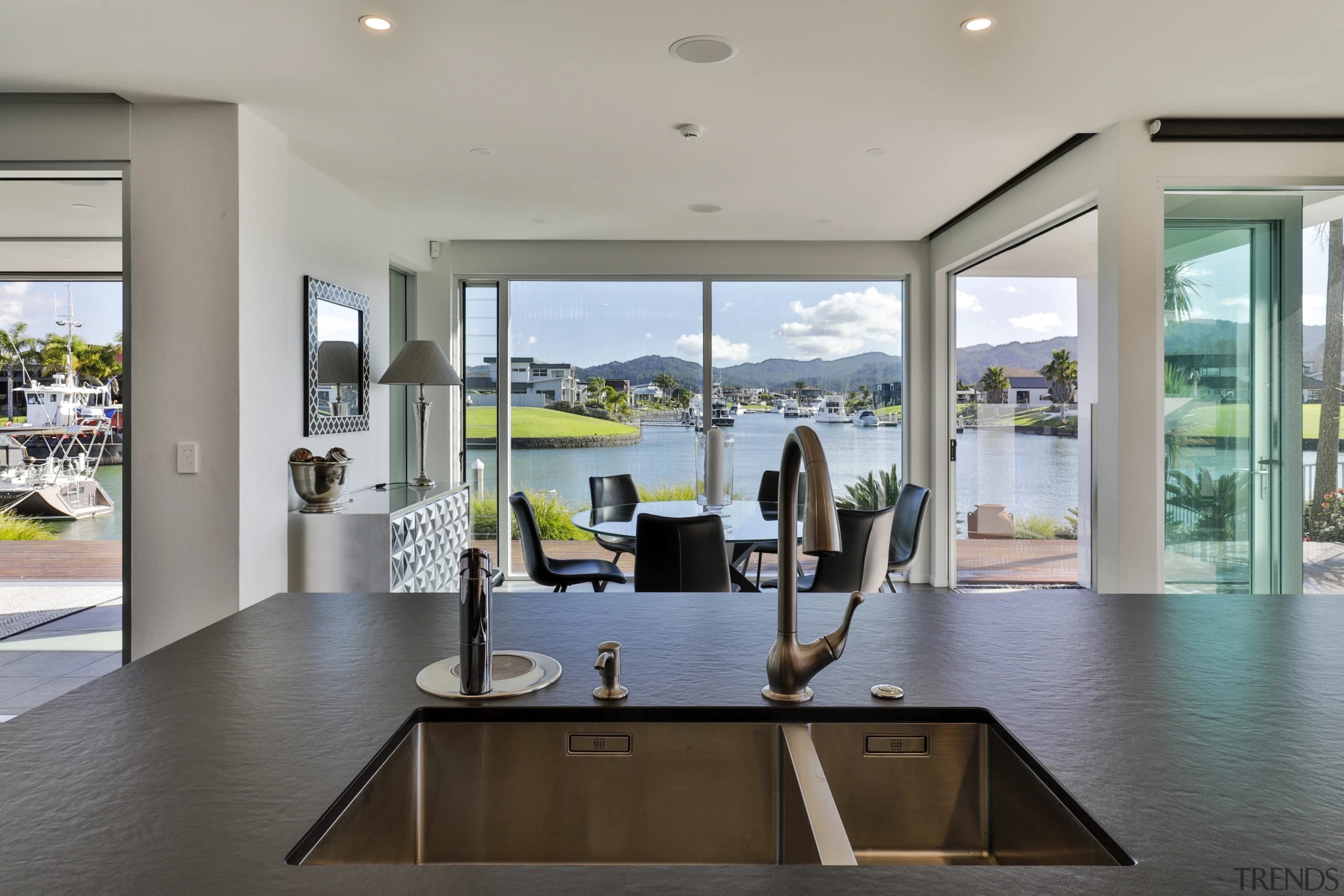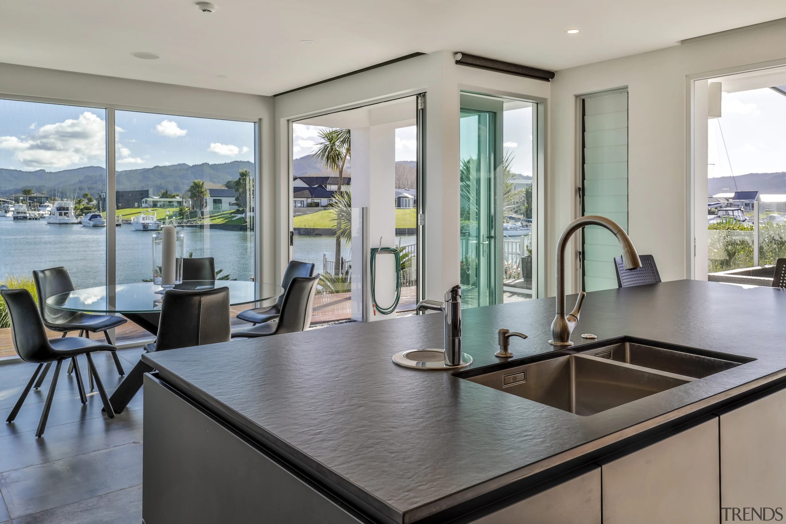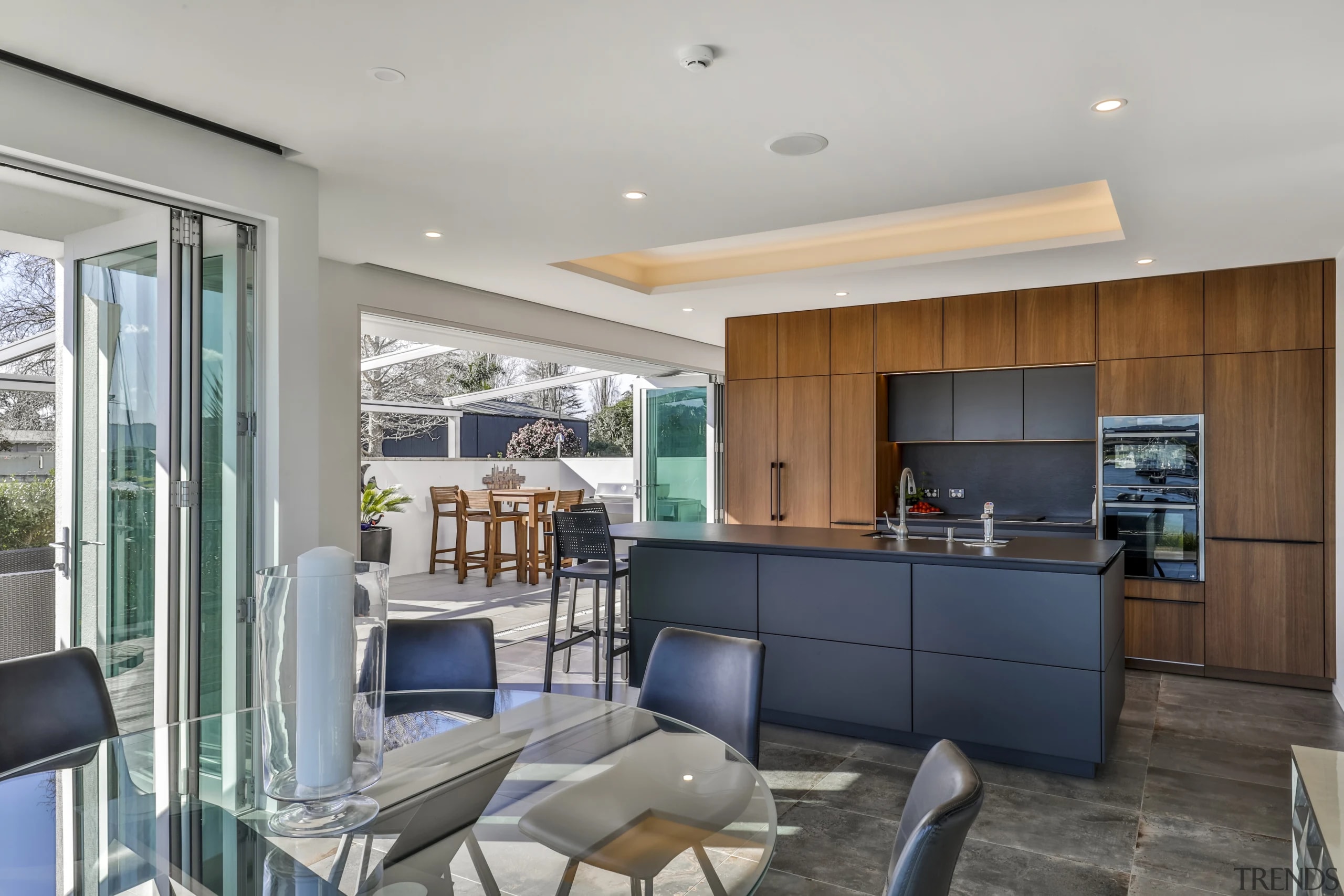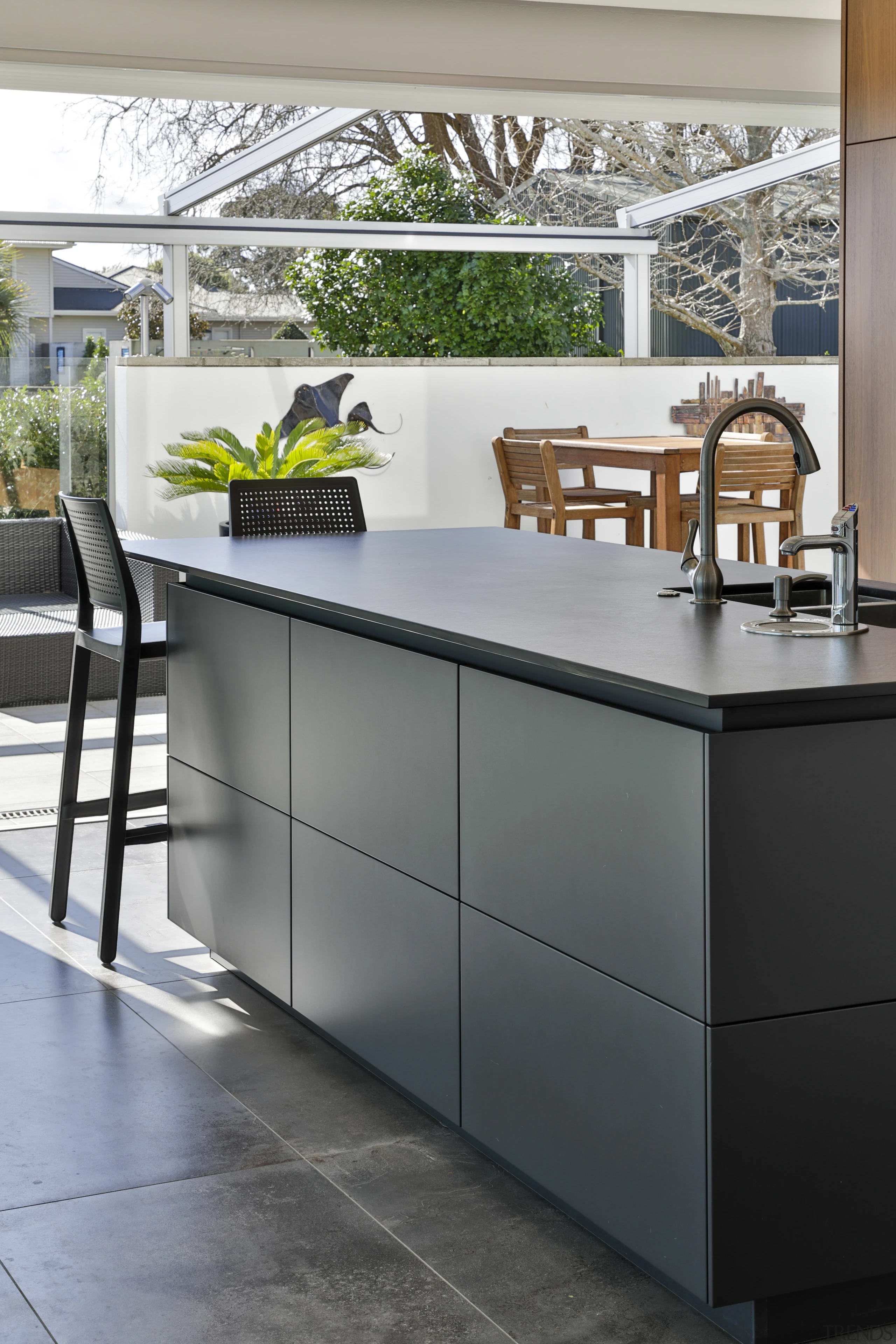 This black and wood kitchen melds into the home's architecture, while also making a statement all of its own