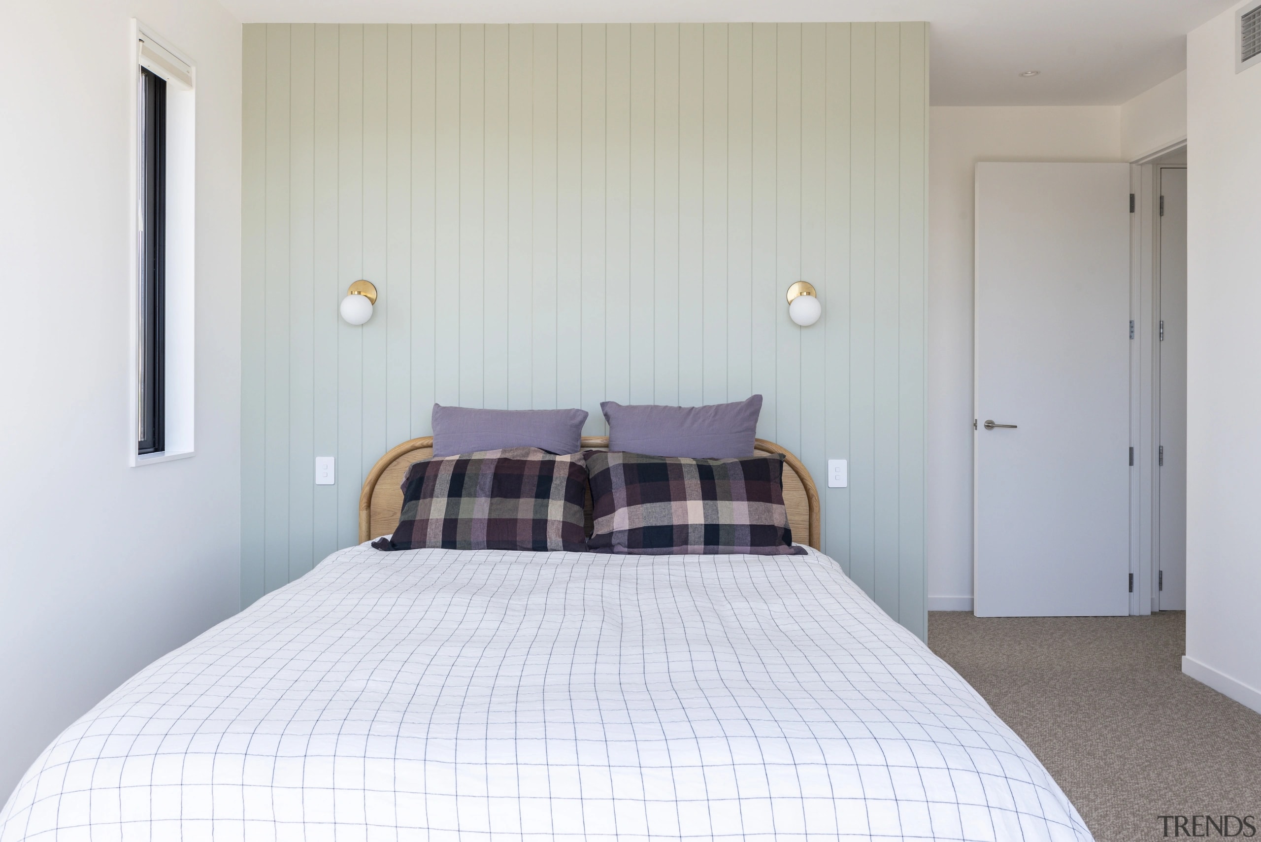 Reeded-glass windows offer privacy from the neighbours on the way upstairs where a tight design programme allows three bedrooms (one with en suite), a separate bathroom and a study – so Chris can work from home – to be plotted in under a 2.7m stud.