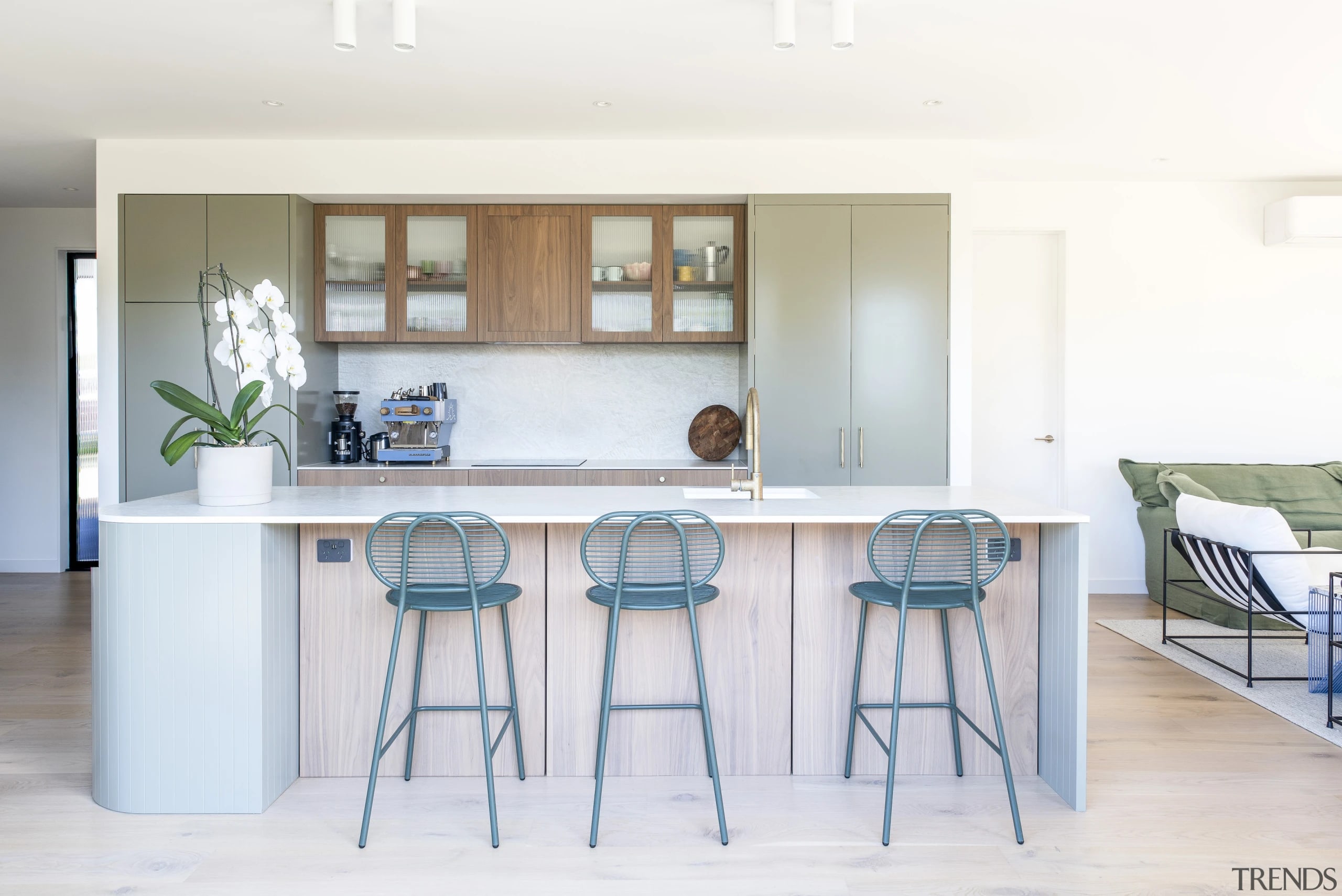 Storage and utility was a must-have for Leah in this 211m² home: a walk-in, under-stairs pantry with many drawers and shelves is a place to hide the jug and the toaster away behind doors.