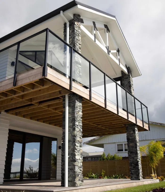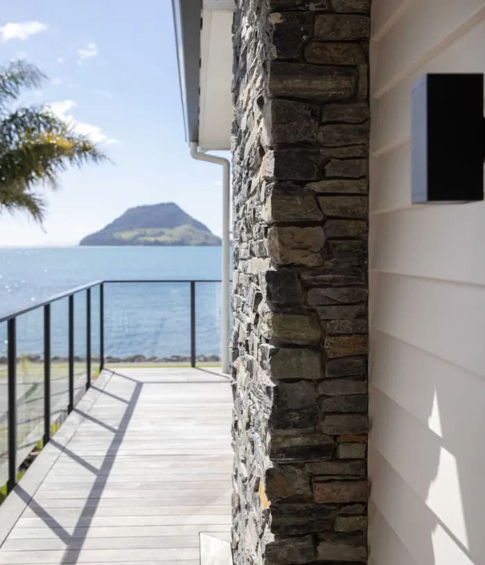 Next came the exciting step of designing their home. Merv and Bronwyn’s vision came to life on a grand scale with a total floor area of 288.6m2 across two levels. The upper level is complemented by an expansive 49m2 wrap-around deck that captures the picturesque view across the Tauranga Harbour and Mt Maunganui.