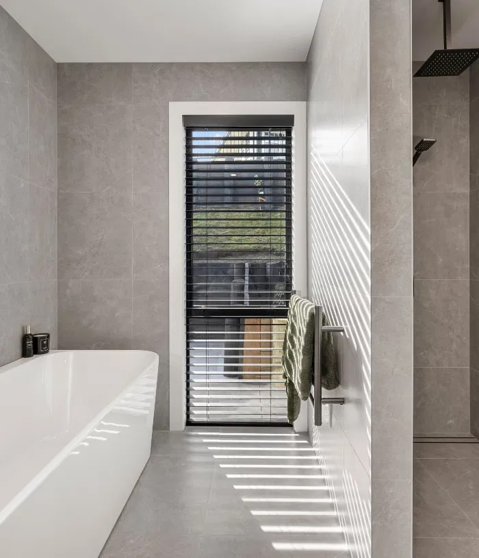 The result is an elegant and spacious 216m² home that perfectly marries style, sustainability, and functionality. It boasts three generously sized bedrooms, including a luxurious master suite with a fully tiled ensuite and a walk-in shower. The two additional bedrooms are complemented by a beautifully designed family bathroom, ensuring comfort and convenience for guests or family members. The home also includes a separate office, providing a quiet space for work or study, ensuring that every aspect of modern living is catered for. And of course, every room has been thoughtfully designed to capture the stunning vistas.