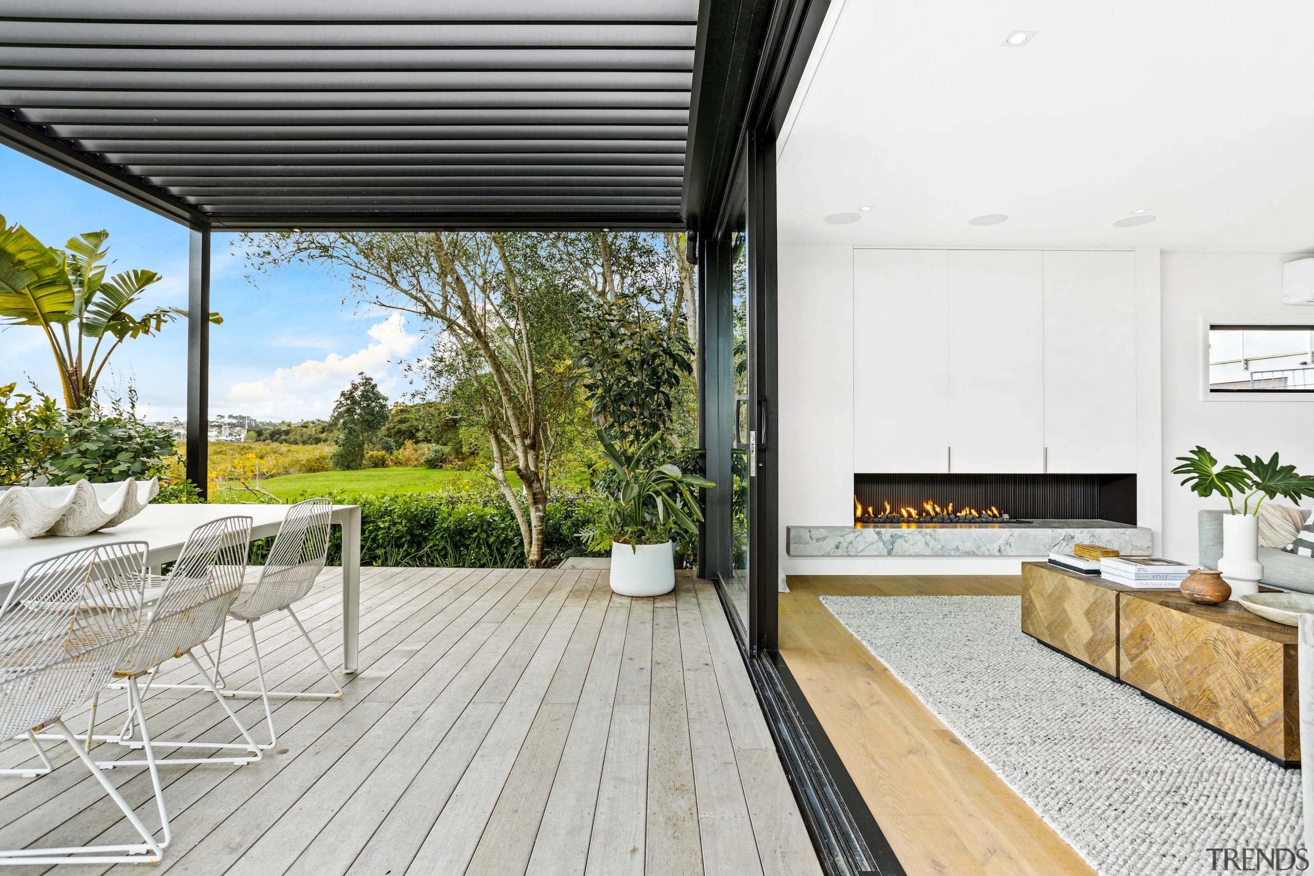 There is this lovely seamless flow from inside to out, and this is accentuated by the stacker doors and high-pitched ceilings.