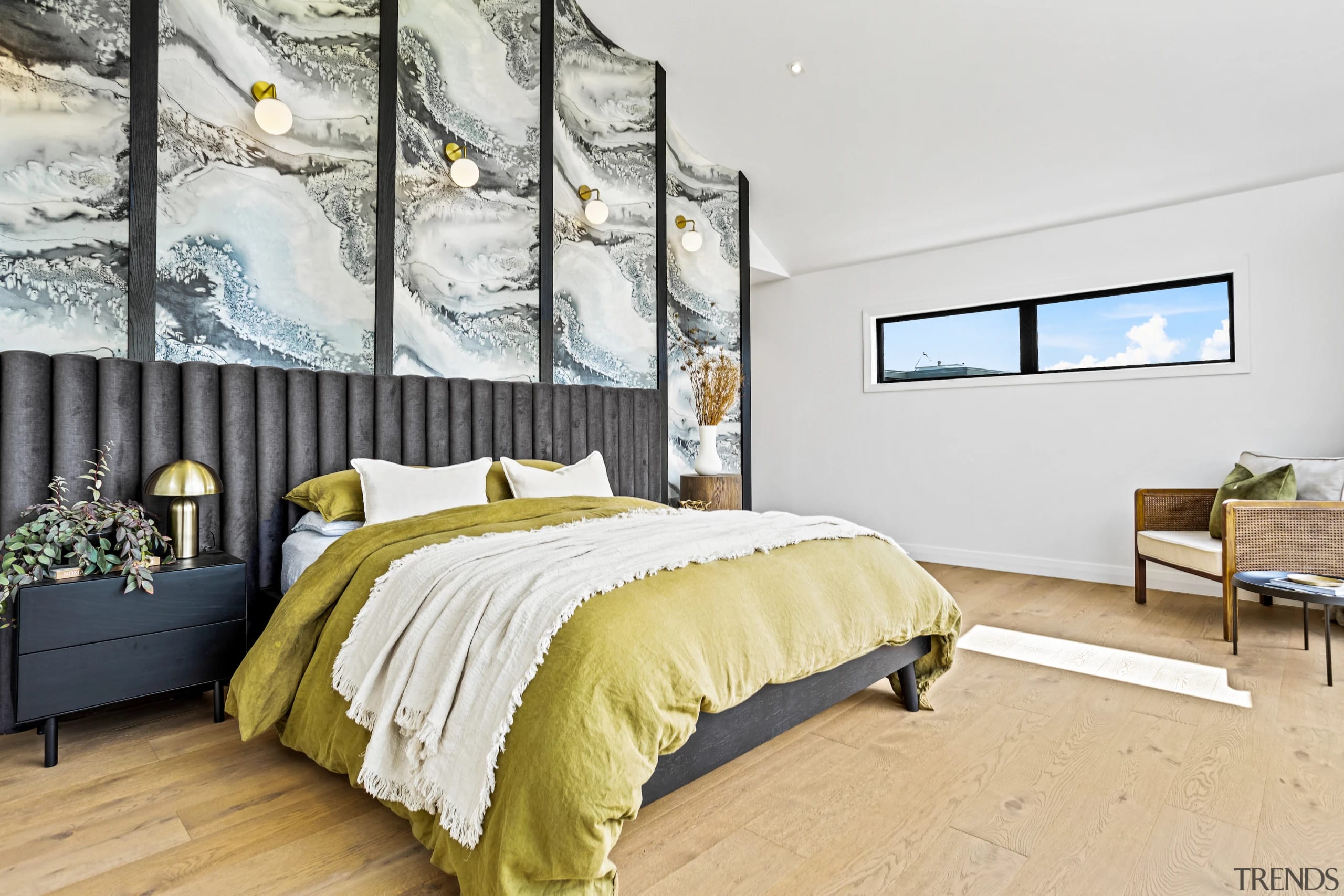 Even the olive bedding was chosen to connect with the mangroves + Nikau palms outside.