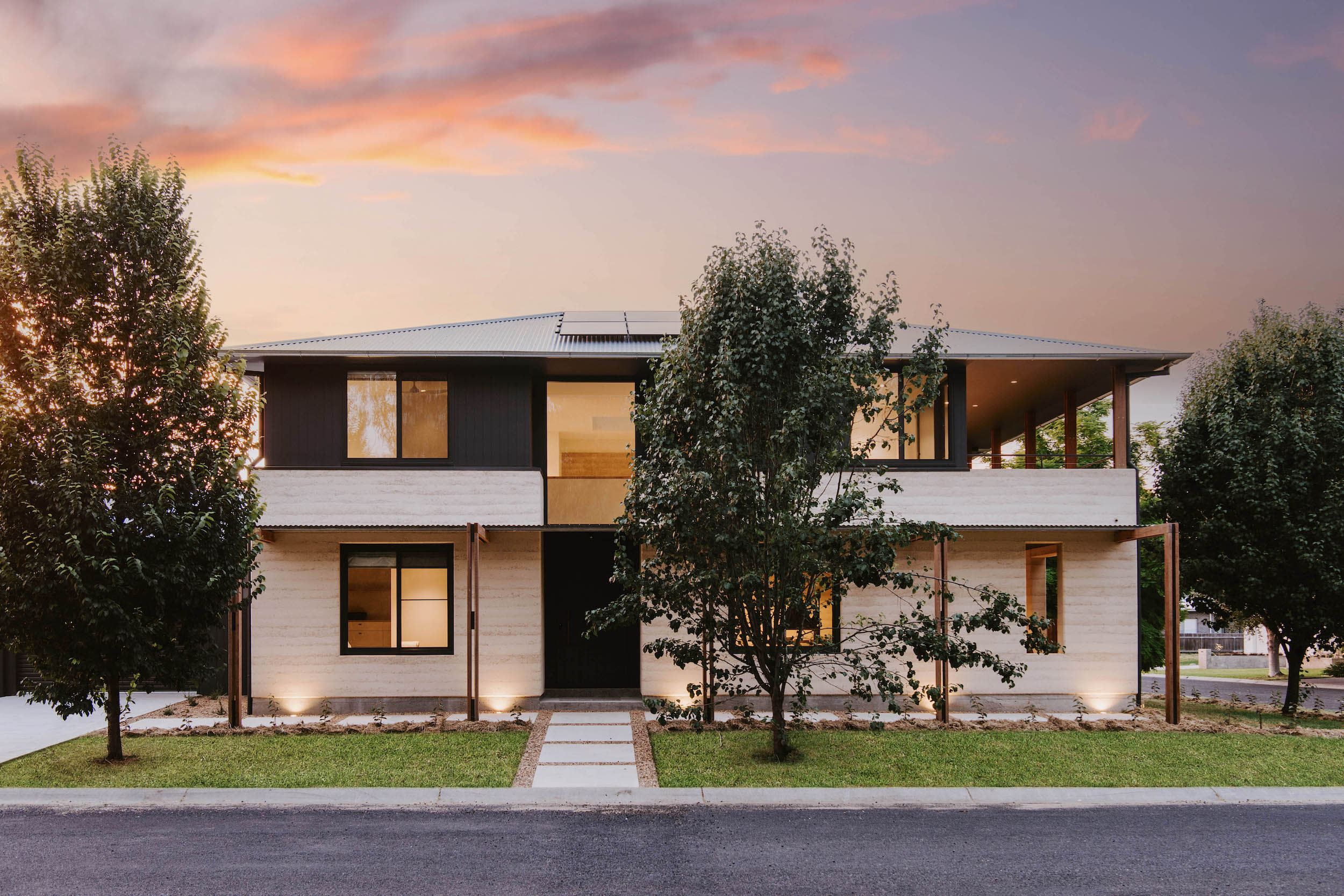 The heavy rammed earth walls provide a great level of thermal mass while responding to the prevailing neighbourhood character of masonry residential buildings.