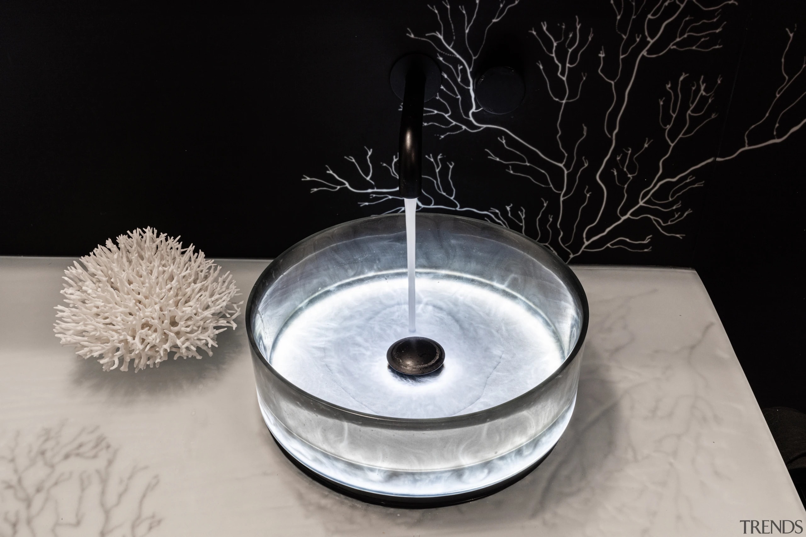 Bathroom designerLisa de Boer, Lisa de Boer Design | BenchtopSlumped glass from VooDoo Glass, with hand painted coral imagery by Lisa de Boer |
