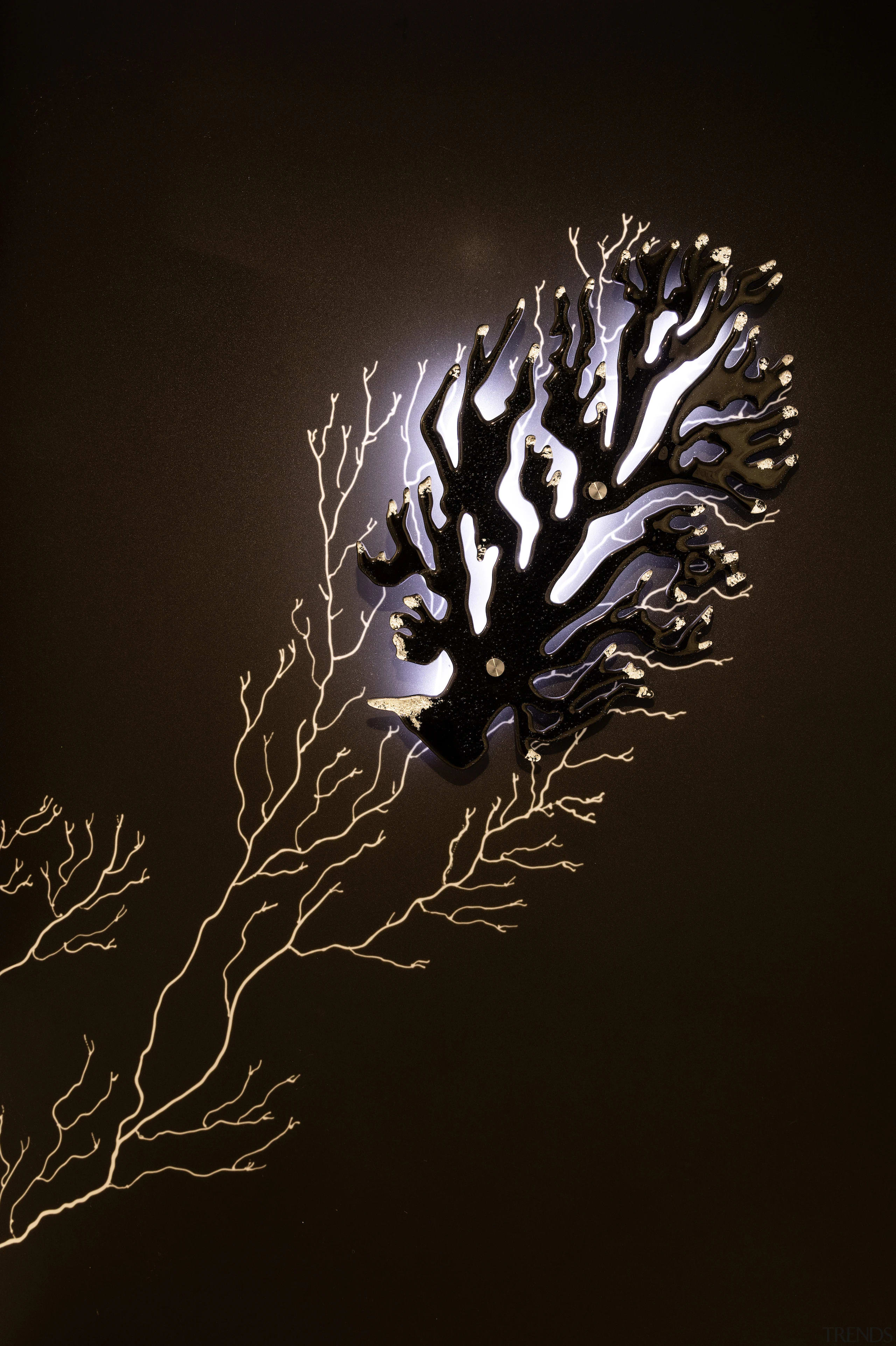 AccessoriesCustom coral design wall sconce light by VooDoo Glass – design by Lisa de Boer | WallcoveringsLow iron, acid-etched matte 6mm glass wall panels throughout; handpainted coral artwork by Lisa de Boer |