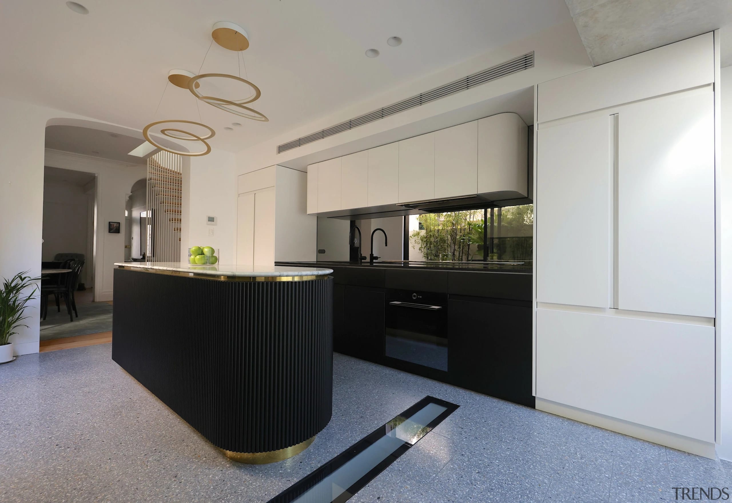 DesignerBrian Heavin, Box Design Studio | CabinetryCustom – Black matt polyurethane; polished brass strips |