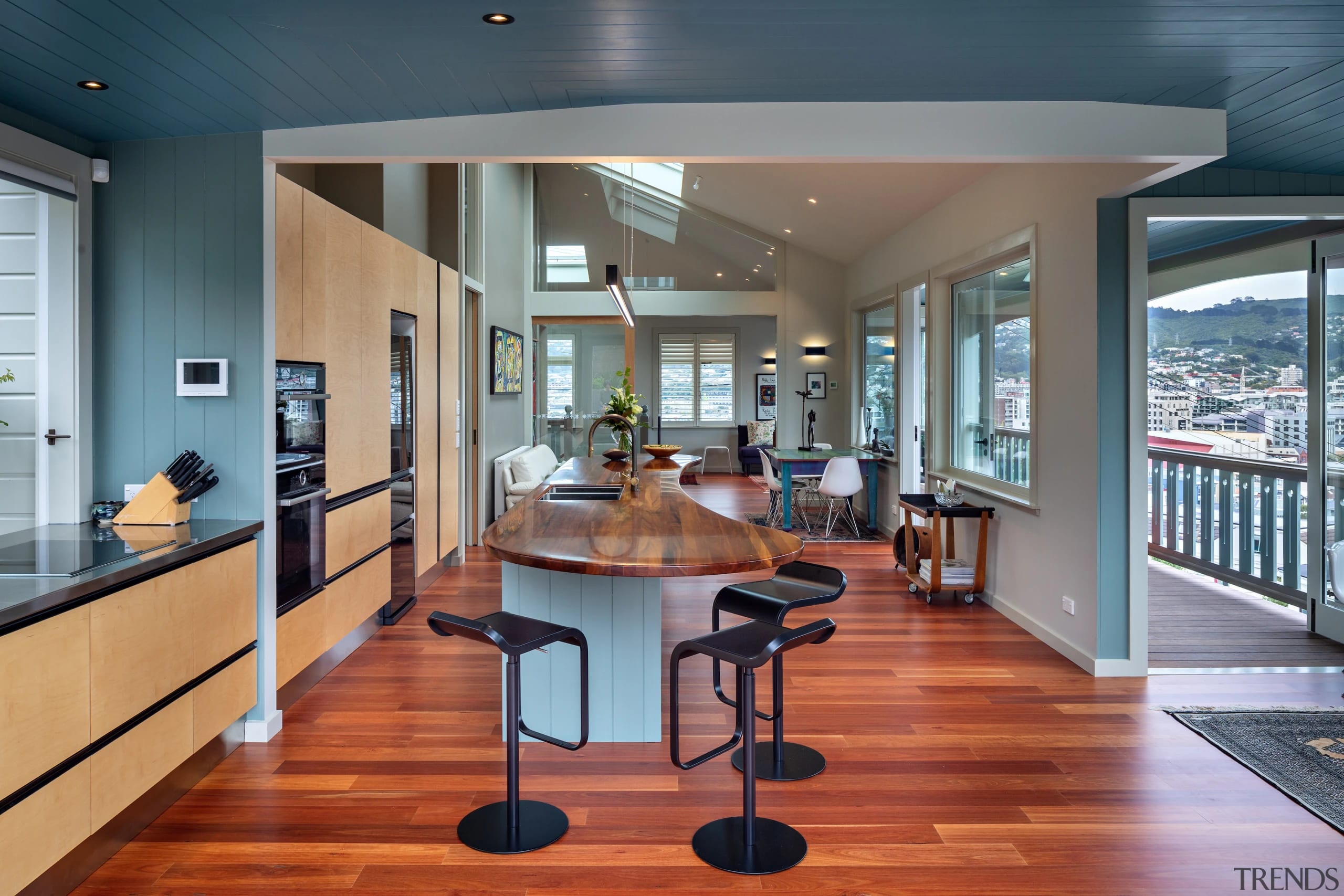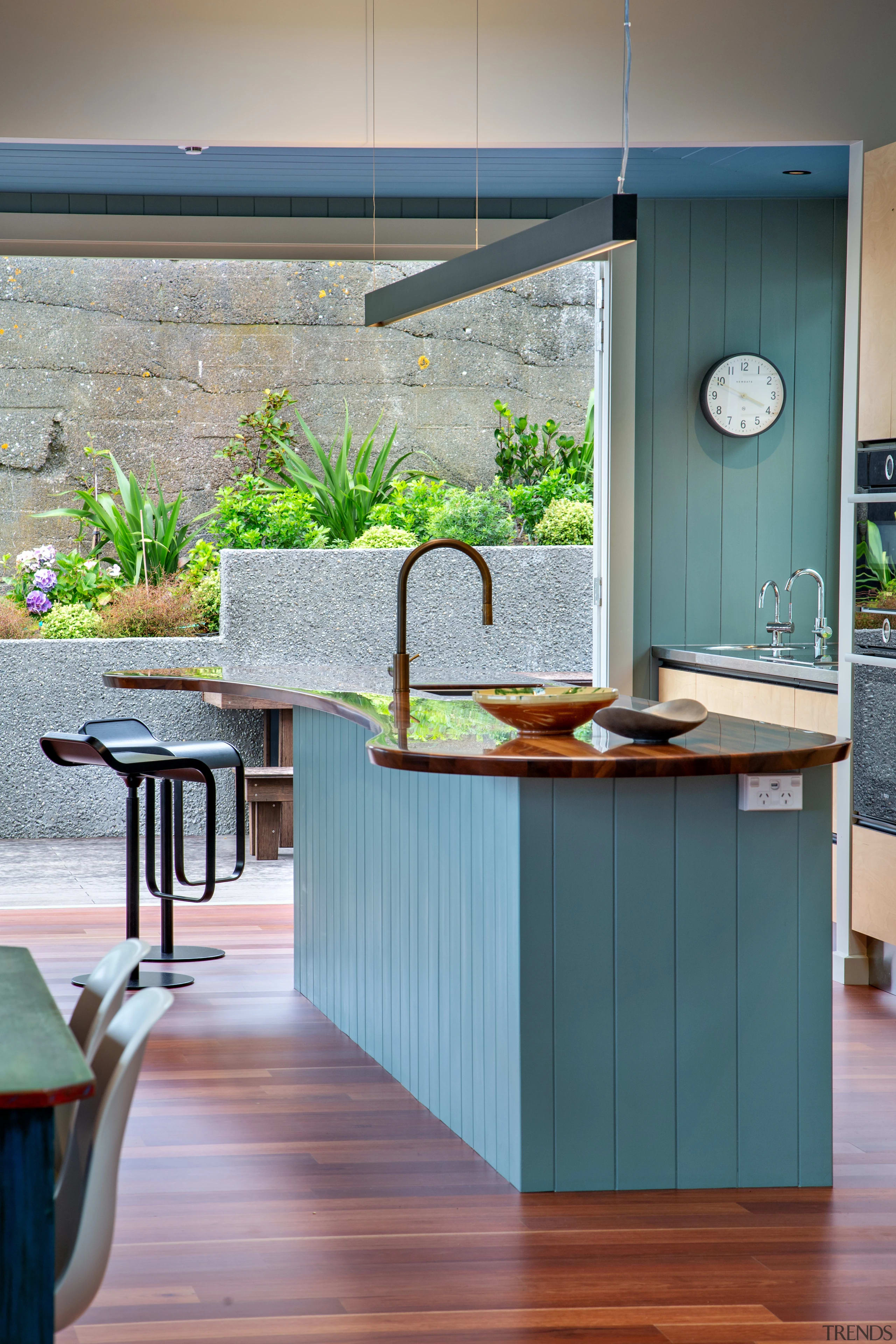 The homeowners are a busy, outdoor-focused couple who wanted a casual organic island bench made from Tasmanian blackwood.