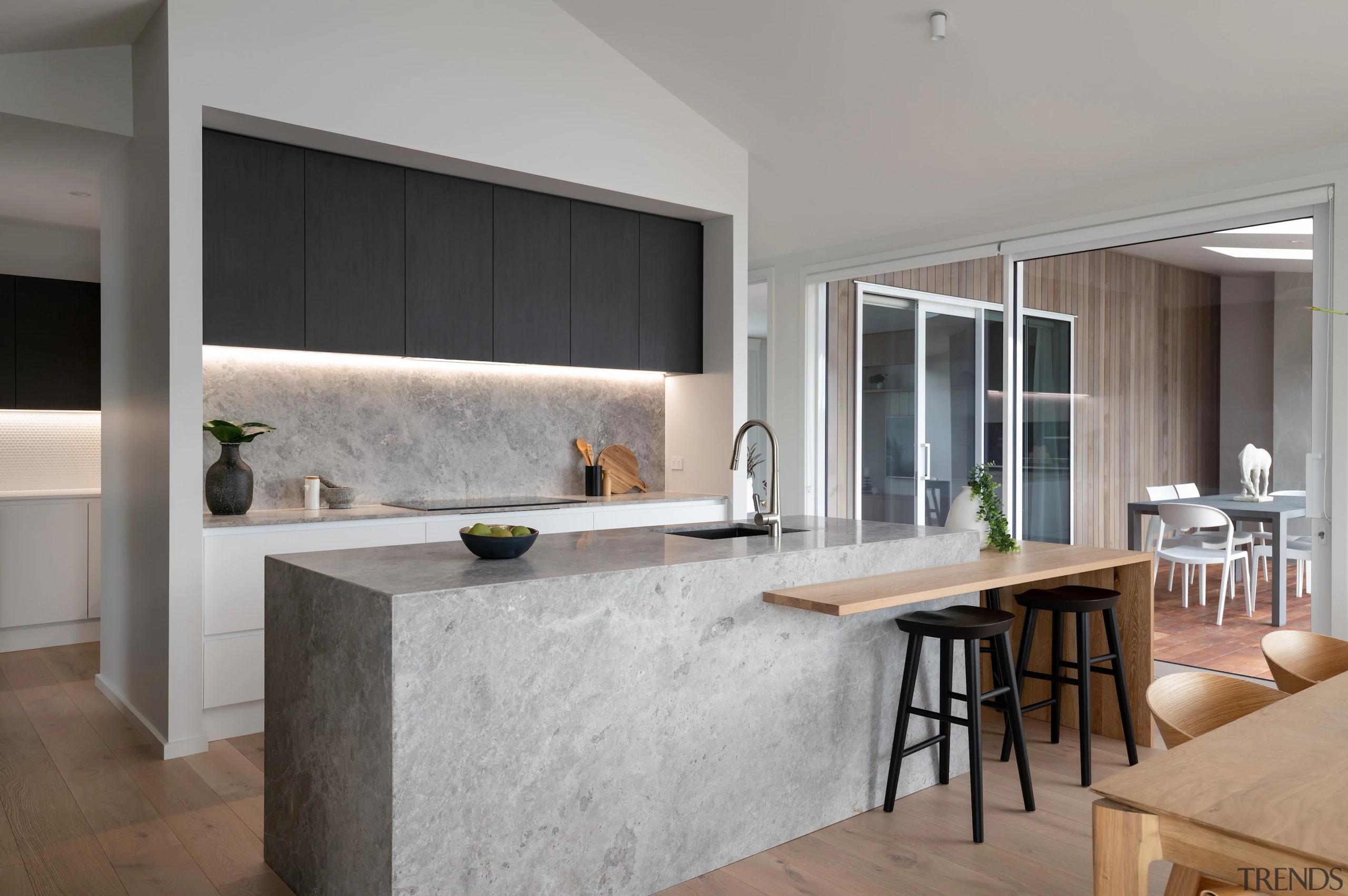 Co-designerShelley Cattle, Fowler Homes Waikato | CabinetryMeltica – Snowdrift Naturale and Carbon Timberland |